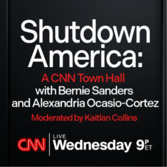 AYD members are invited to submit questions for CNN’s upcoming town hall, Shutdown America, featuring Senator Bernie Sanders and Congresswoman Alexandria Ocasio-Cortez, moderated by Kaitlan Collins. The event will take place live in Washington, D.C., as the government shutdown enters its second week.