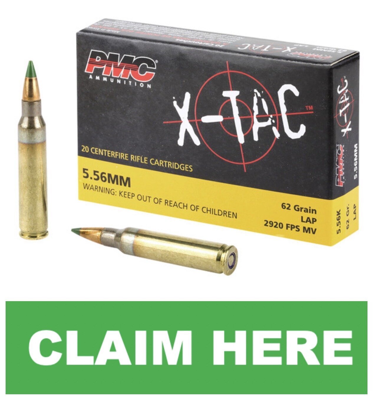 Tactical USA has a batch of PMC 5.56 NATO 62 Grain—great stuff, light armor piercing, brass case, reloadable, 2,920 fps—and they want to send you a box for FREE.