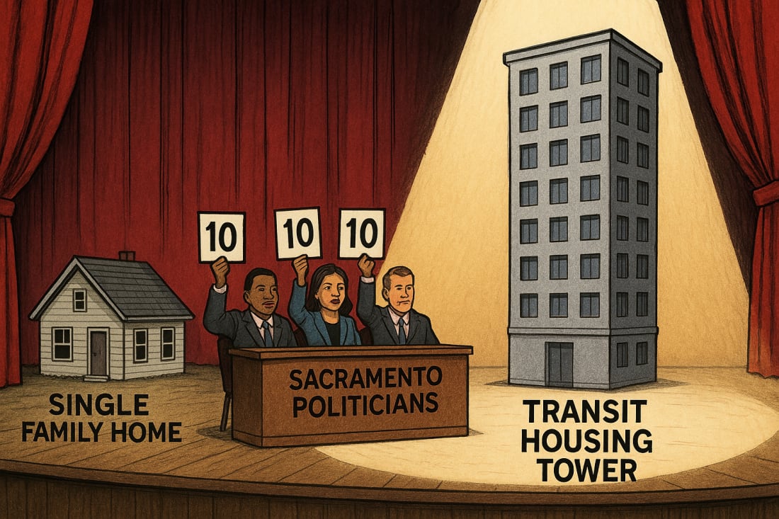 This column really talks about, in great detail, why SB 79 is a terrible law. For our paid subscribers, after this column, is a strong list of policies that should be adopted that would actually start to make housing great again in California. ⏱️ 4.5 min readThe Illusion of ProgressCalifornia’s housing crunch didn’t appear out of thin air. For decades, state policies have piled on taxes, fees, and regulations that drive up construction costs and slow building. Endless permitting delays, CEQA reviews, impact fees that add tens of thousands, and union labor mandates push the average California home over $800,000—pricing out families and forcing brutal commutes. Enter SB 79, touted as a bold step to add more housing for the Golden State. At first glance, it seems straightforward: Developers get the green light for taller buildings—up to nine stories in some zones near public train or bus stops. The pitch is to cluster homes near transit, supposedly easing traffic and boosting affordability. A Narrow Mandate Instead of Broad ReliefBut this falls far short of a real solution. It doesn’t repeal the burdensome rules that stifle housing across the board. It fast-tracks one specific type of project while leaving the rest of the market tangled in red tape. If Sacramento truly wanted to unleash supply, it would lower fees, streamline approvals everywhere, and rein in union-driven costs. That would let the market build where demand is—not just where lawmakers decree. SB 79 mandates “affordable housing,” requiring developers to set aside below-market units for people under a specific income threshold. While this may sound benevolent, it raises costs for market-rate units, as builders pass subsidy costs to other buyers or renters—making housing even pricier for the middle class. Ignoring What Californians WantSB 79 is a progressive planner’s dream: cramming higher populations into dense urban and suburban areas, whether Californians want that or not. Authored by ultra-liberal San Francisco Sen. Scott Wiener, the bill assumes everyone wants a planner’s vision of transit-first, car-free living. But that worldview—shaped by dense city living—ignores the millions who prefer single-family homes with yards, garages, and space. This law doesn’t stop at urban cores. It reaches suburban areas in major metro counties—anywhere near a qualifying transit stop—no matter how out of place. That’s a huge shift imposed from the top down. The Cost of Urban ChaosHigh-density living brings well-documented problems: elevated crime, chronic homelessness, and civic disorder. FBI data shows violent crime rates in cities like Los Angeles and San Francisco are often higher than in surrounding suburban or rural areas. Property crime also tends to be more concentrated in dense urban zones. And encampments near transit stops destabilize neighborhoods, not just aesthetics. For most families, this isn’t the American Dream. They want safe, quiet neighborhoods—not the noise and disorder of crowded transit hubs. A Market Tilted Against FreedomThis policy distorts incentives. By giving special treatment to towers near transit, the state tilts the playing field against lower-density options. Single-family developments—especially in the Central Valley or Inland Empire, where land is affordable—get sidelined. Why build a modest subdivision when towers get fast-tracked Every new single-family home triggers a chain of upgrades—condo owners move up, renters move in. That’s how the housing supply grows across the board. But Sacramento isn’t chasing prosperity—it’s chasing density as an ideological goal. High-rises might work in San Francisco’s core, but dropping them into suburban communities will strain infrastructure and will alter neighborhood character. This bill entrenches a two-tier system: fast lanes for favored projects, maintaining barriers for everyone else. It’s the government picking winners and lo, ers—warping the market to fit a progressive vision instead of letting supply meet demand. Eroding Local Control and Twisting Property RightsOne of the bill’s most troubling features is how it overrides local control. Local city councils across California—from major cities to small suburbs—opposed SB 79, warning it strips input and hits resource-strapped areas hardest. They’re right. Picture investing in a quiet home—then watching an eight-story tower rise next door, balconies peering into your backyard. Progressives call that “equity.” Most would call it an attack on privacy and property values. Local governments exist to balance competing interests—assessing traffic, parking, school impacts, and neighborhood character. SB 79 bulldozes that role, assuming Sacramento bureaucrats know best. Now I am not defending local governments — far too many of which are overly-restrictive to the extreme, but eliminating their meaninful impact all together? Not a great plan. And no, this isn’t deregulation. It’s selective intervention. The state says, “If you want to build subsidized high-density housing near transit, we’ll make it easy.” Everywhere else? Tough luck. It’s Sacramento’s top-down urban design experiment—SimCalifornia in real life. So, Does It Matter?SB 79 matters because it once again treats symptoms while ignoring the disease. Forced density without fixing the fundamental cost drivers—fees, red tape, union mandates—won’t solve California’s housing crisis. Instead, it creates mismatched development, overburdened transit, and a tidal wave of suburban backlash. This is what happens when Sacramento prioritizes ideology over economics, and headlines over results. Which it does a lot The state picks winners and losers, stifles natural growth, and overrides the very local leaders best equipped to manage change responsibly. It means empowering builders, protecting property rights, and respecting that not every Californian wants to live in a h