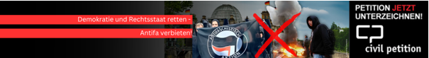Forderung, die Antifa zur Terrororganisation zu erklären und sie dann zu verbieten, versammeln können, müssen wir unsere Kampagne bewerben. Damit wir die Kosten dafür stemmen können, bitte ich Sie um Ihre bestmögliche Unterstützung. Vielen Dank! |