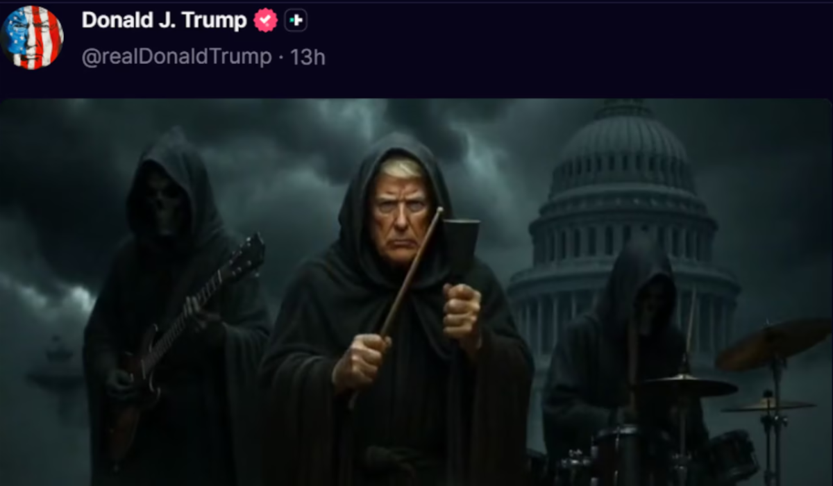 Trump’s MAGA GOP are tireless champions of the twin cliched inevitabilities of life: death and taxes. And now even Donald Trump is embracing his status as Sadist-in-Chief, sharing AI-generated videos of himself as the Grim Reaper visiting death and destruction upon the people: