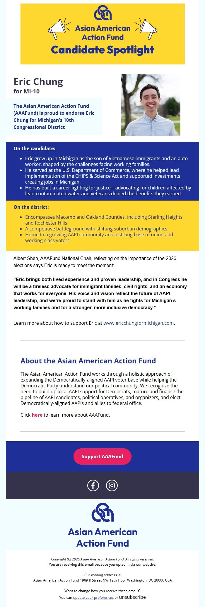 The Asian American Action Fund (AAAFund) is proud to endorse Eric Chung for Michigan’s 10th Congressional District