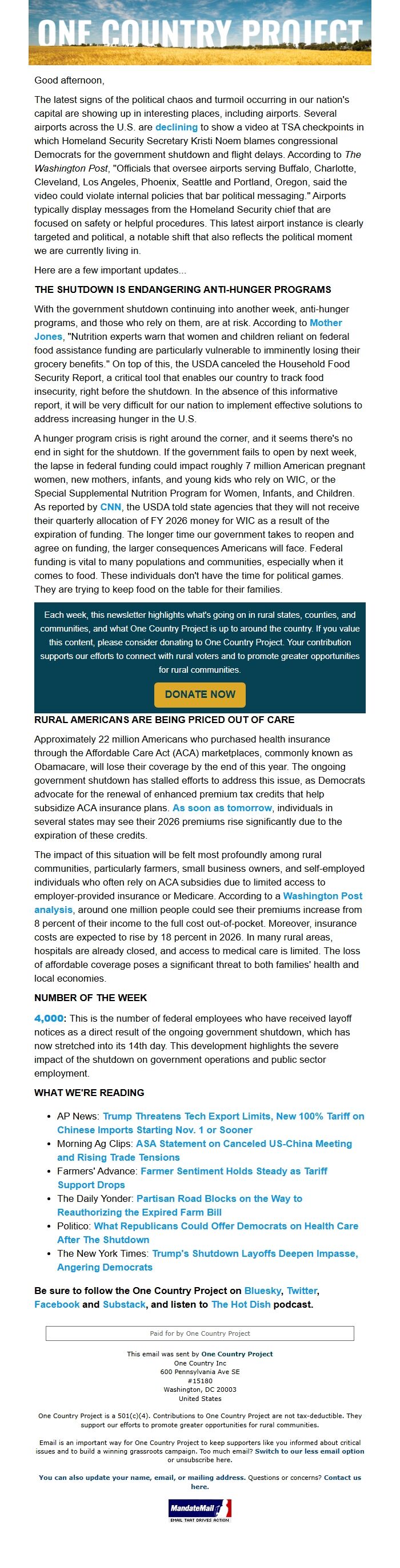 Be sure to follow the One Country Project on <a href='[link removed]' target='_blank'>Bluesky</a>, <a href='[link removed]' target='_blank'>Twitter</a>, <a href='[link removed]' target='_blank'>Facebook</a> and <a href='[link removed]' target='_blank'>Substack</a>, and listen to <a href='[link removed]' target='_blank'>The Hot Dish</a> podcast.