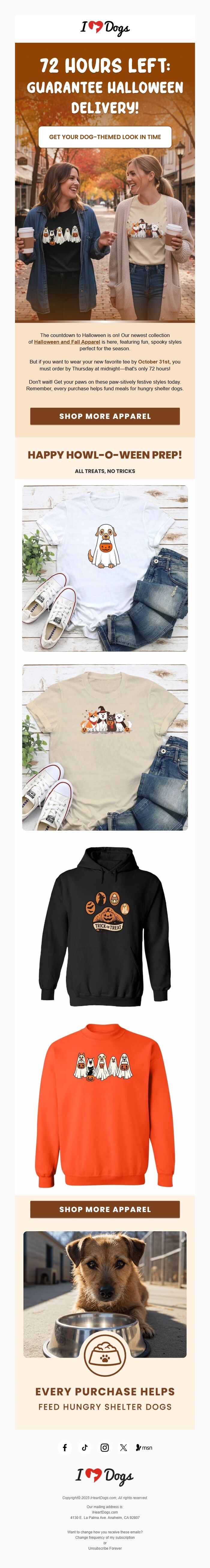 But if you want to wear your new favorite tee by October 31st, you must order by Thursday at midnight—that's only 72 hours!