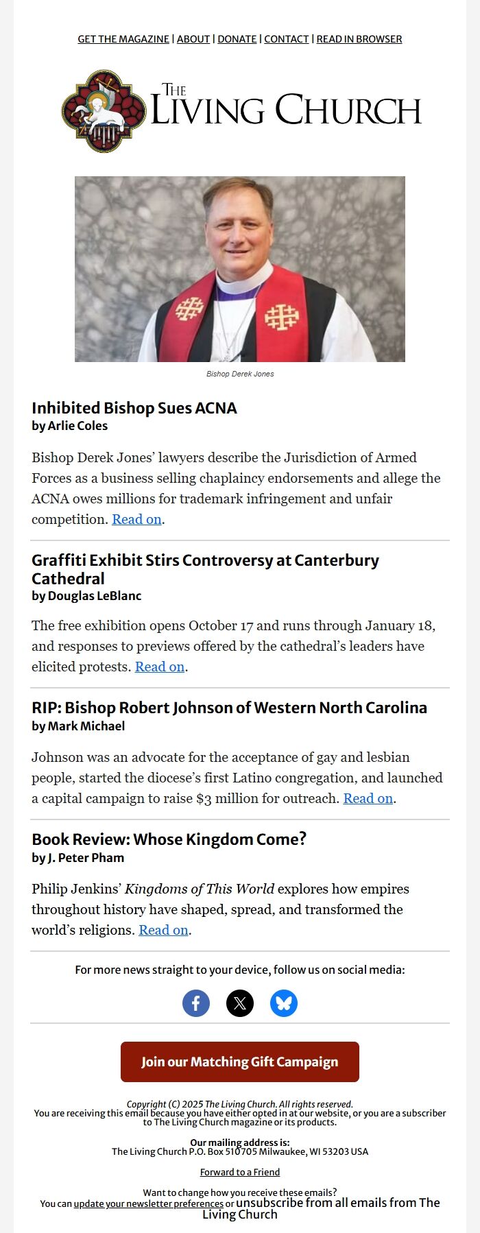 You are receiving this email because you have either opted in at our website, or you are a subscriber to The Living Church magazine or its products.