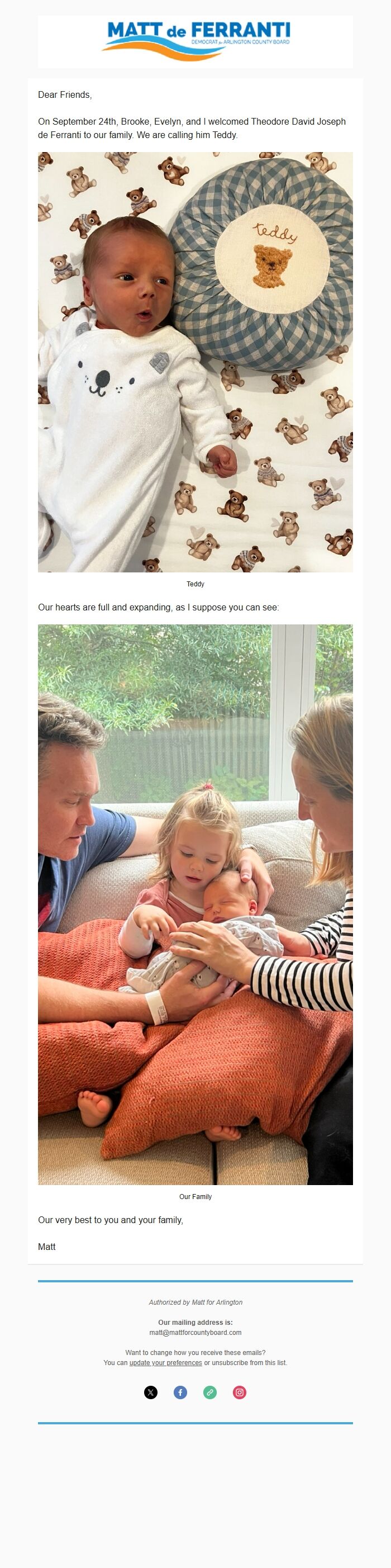 On September 24th, Brooke, Evelyn, and I welcomed Theodore David Joseph de Ferranti to our family. We are calling him Teddy.