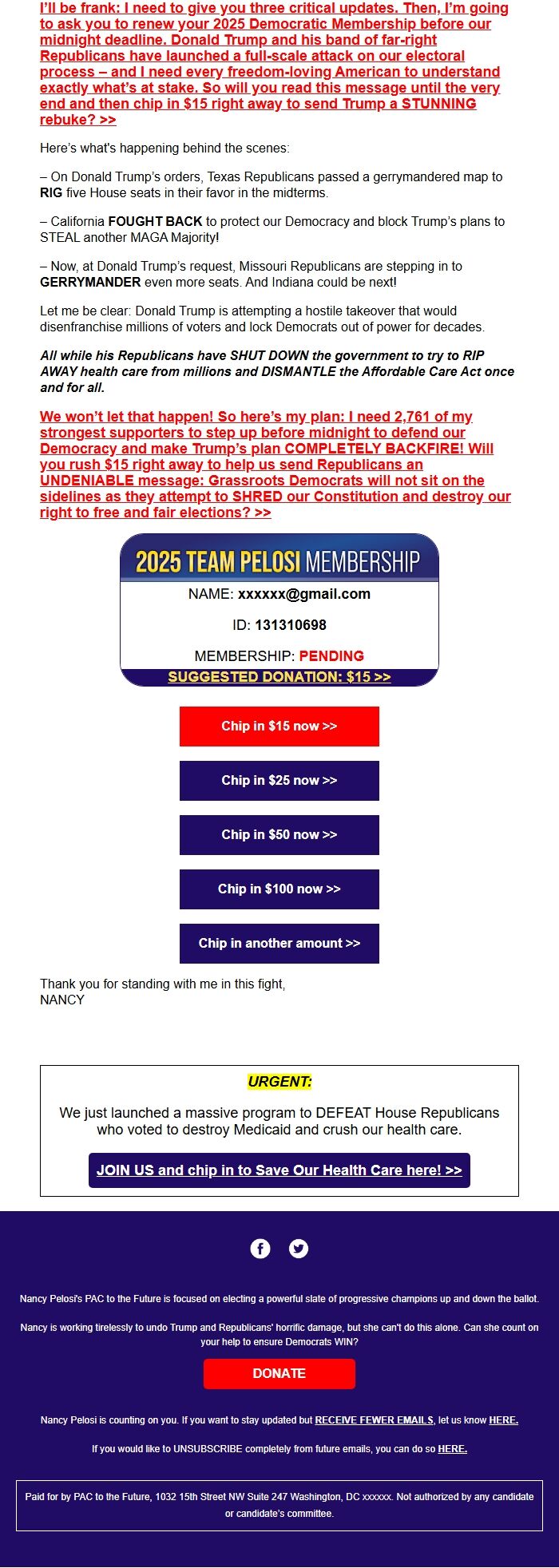 I’ll be frank: I need to give you three critical updates. Then, I’m going to ask you to renew your 2025 Democratic Membership before our midnight deadline. Donald Trump and his band of far-right Republicans have launched a full-scale attack on our electoral process – and I need every freedom-loving American to understand exactly what’s at stake. So will you read this message until the very end and then chip in $15 right away to send Trump a STUNNING rebuke? >> [[link removed]]