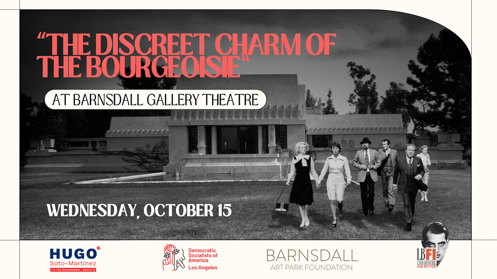 For this month's, DSA-LA is proud to co-present a screening of Luis Buñuel's classic 1972 film, The Discreet Charm of the Bourgeoisie.