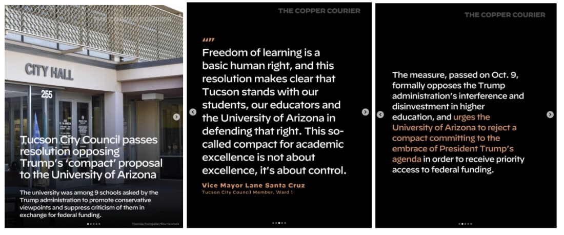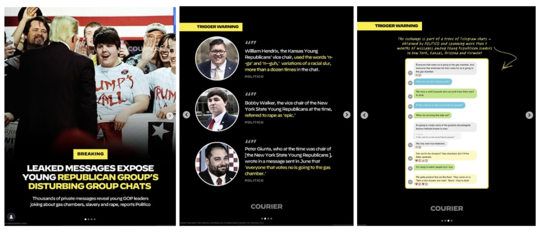 Hi all! As always, thanks for being a member of our ROUNDUP community. I couldn’t appreciate it more. Exciting news! COURIER’s Panic World received two bronze awards for the genres “conversation starter” and “weird” at the Signal Awards. A big thank you to everyone who voted. Now let’s get into today’s roundup! - Charlotte Robertson P.S. If you haven't already, give us a follow on social (like and subscribe to our YouTube, Instagram, TikTok, Bluesky, Threads, and X/Twitter) to make sure you don't miss anything. Should You RSVP to a Protest?This week, Ctrl Alt Right Delete’s Melissa Ryan guest authors FWIW and takes a look at whether or not you should share your information with protest organizers and what your potential safety risks are. Mark Jacob hands out pro-democracy grades to the mediaAuthor of Stop the Presses — and former metro editor of the Chicago Tribune and former Sunday editor of the Chicago Sun-Times — Mark Jacob, grades media outlets on their performance in the age of Trump disinformation. Trump admin forms propaganda coalition to create ‘war zone’ imagery in US citiesIn this week’s Below the Belt(way), COURIER national correspondent Camaron Stevenson takes a look at how Trump is using propaganda to create fictitious ‘war zones,’ Hegseth’s War Department, and more. Advertise in this newsletterDo you or your company want to support COURIER’s mission and showcase your products or services to an aligned audience of 190,000+ subscribers at the same time? Contact [email protected] for more information. COURIER broke three million followers on TikTok! If you haven’t already, give us a follow and stay up-to-date on the latest breaking news. On COURIER's TikTok, you can see the top post of the week here with 11+ million views and 1.4+ million likes. On COURIER's Instagram, you can see the same video was the top post of the week here with 3.1+ million views and 85,000+ likes. Combat vet defends worker being detained without warrant by alleged federal officersA combat veteran stepped up to defend a man who was being detained by two plainclothes men who presented no form of identification and refused to answer who they were. COURIER has the video. Leaked messages expose Young Republican group’s disturbing group chatsCOURIER covered leaked messages from a group chat of Young Republican leaders across the country that included shocking racist, sexist, and antisemitic comments. Member of the Chicago press gets arrested by masked ICE agentsCOURIER shared the viral video of WGN video producer Debbie Brockman being arrested by masked ICE agents in Lincoln Square in Chicago. In the video, Brockman tells a witness to call her studio. Advertise in this newsletterDo you or your company want to support COURIER’s mission and showcase your products or services to an aligned audience of 190,000+ subscribers at the same time? Contact [email protected] for more information. Wisconsin Republicans introducing new bill to ban absentee ballot drop boxesCOURIER’s Wisconsin outlet, Up North News, reports on Assembly Republicans’ move to pass a bill that would ban all future use of absentee ballot drop boxes in Wisconsin, seeking to remove a secure option for voting. Tucson City Council opposes Trump’s ‘compact’ proposal to the University of ArizonaCOURIER’s Arizona outlet, Copper Courier, reports on the unanimous Tucson City Council vote to urge the University of Arizona to reject a compact committing to the embrace of President Trump’s agenda. Planned Parenthood wants to stop this billionairePlanned Parenthood is sounding the alarm that right-wing billionaires like Jeffrey Yass are trying to upend Democratic control of the Pennsylvania Supreme Court reports Sean Kitchen for COURIER’s The Keystone. |