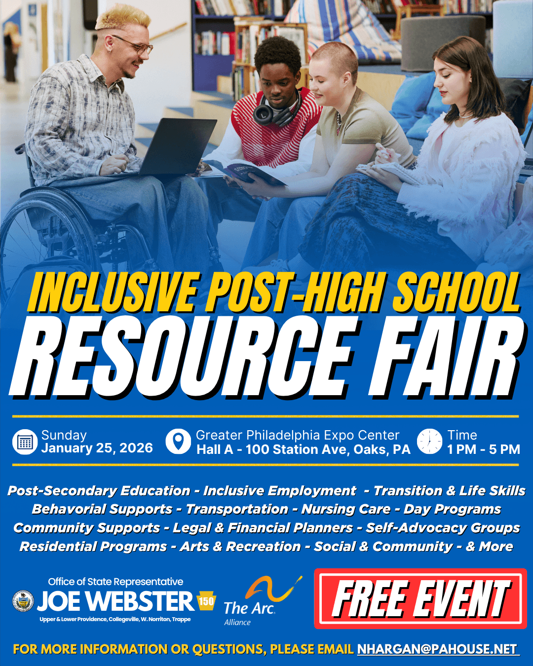 Dear Neighbor, I hope you are well. Along with my statement on the state budget impasse, in this email you will also find information about my bill that passed the Pennsylvania House last Wednesday, a save the date for my free Inclusive Post-High School Resource Fair, construction alerts, key election dates and more events happening in our area! As always, I hope you find the information below useful. | Important Updates/Highlights | HB 664 Passes the PA House | I’m pleased to announce that my Road Salt Management bill co-authored with Rep. Ben Sanchez passed the Pennsylvania House last week with a 104-99 vote. Too often road salt is found in our waterways, impacting drinking water from wells and wildlife and fish throughout our commonwealth. HB 664 directs PennDOT and the Department of Environmental Protection to collaborate and develop the best management practices for the use and reduction of salt to treat our roadways. The bill now heads over to the Pennsylvania Senate for consideration. | Inclusive Post-High School Resource Fair | Save the date, neighbors! My FREE Inclusive Post-High School Resource Fair with The Arc Alliance and a team of local volunteers is on Sunday, January 25, from 1 p.m. to 5 p.m. in Hall A of the Greater Philadelphia Expo in Oaks! We are currently seeking vendors for this event and interested parties can apply here. Ideal vendors currently serve high school students with IEPs and 504 plans and offer post‑secondary opportunities such as employment, internships, apprenticeships, transitional services, continuing education, or supported living programs. A comprehensive list can be found below. - Post-Secondary Education: Institutes that offer Higher Education programs for IDD/A