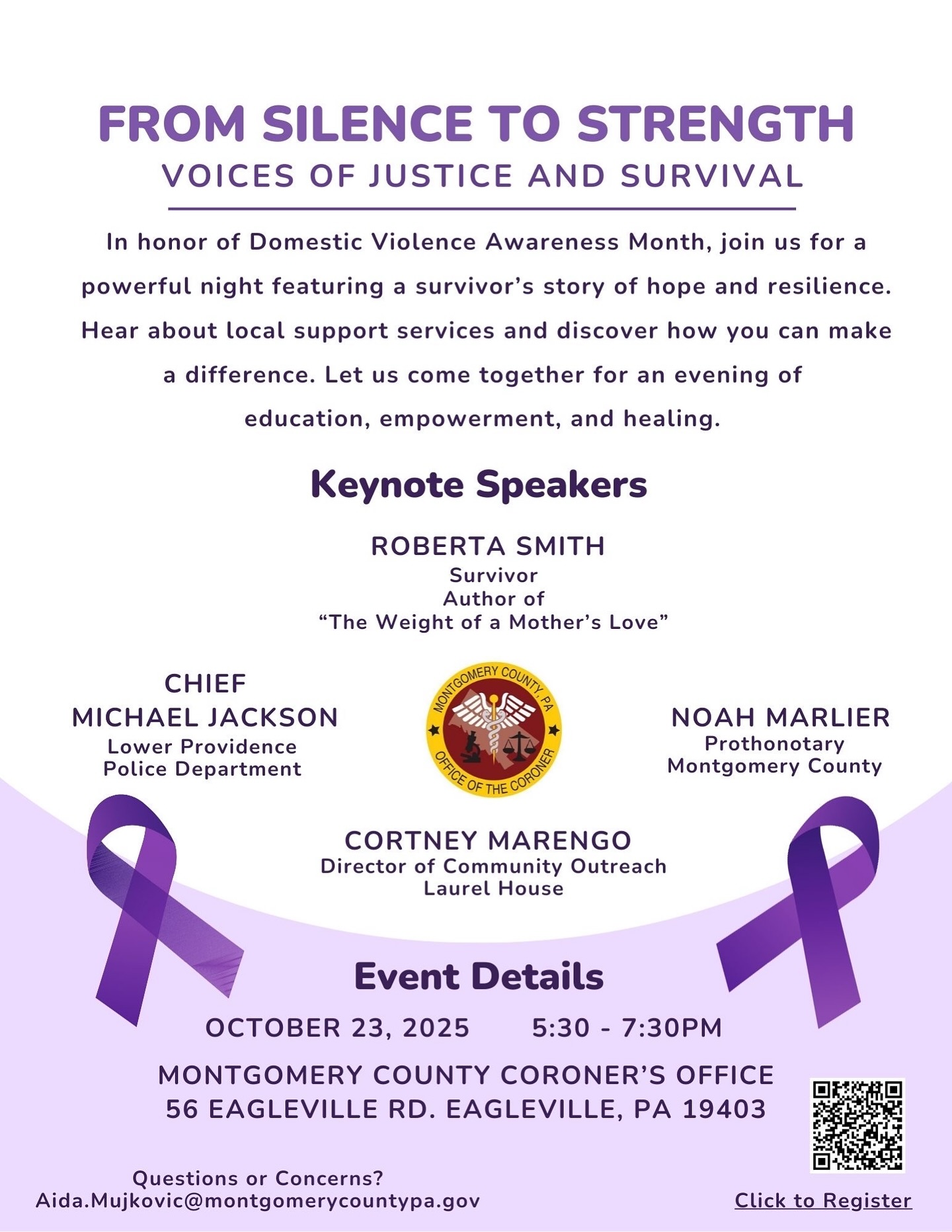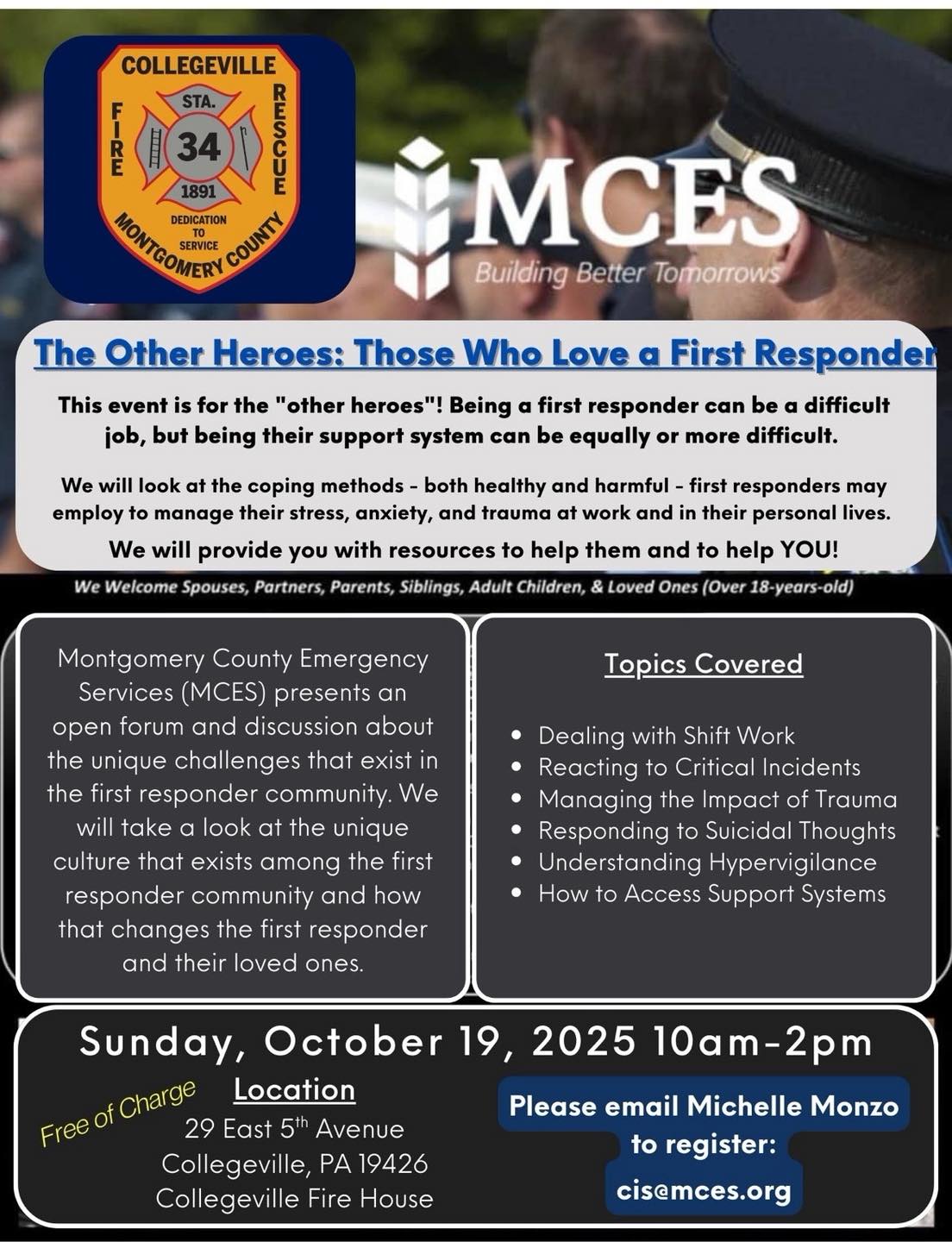 There is no cost to participate but all vendors must apply and be approved. For more information, reach out to Nicole at [email protected] | Are you registered to vote? 🗳️ Pennsylvania voters have until Monday, October 20, to register and be ready to vote in the Municipal Election occurring on Tuesday, November 4! Don’t miss your chance to make your voice heard. Register now at vote.pa.gov/Register | Heads up, neighbors! PennDOT has announced the following road work in our area: Tuesday, October 7, through Tuesday, October 21, from 9 a.m. to 3 p.m., a lane closure will be in place Mondays through Thursdays on eastbound U.S. 422 between Trappe/Royersford and Oaks/Audubon interchanges in Upper Providence and Limerick townships. Friday, October 17, from 9 a.m. to 3 p.m., a lane closure will be in place on the Route 29 (Collegeville Road) eastbound off ramp at the Route 29/U.S. 422 interchange in Upper Providence Township. Sunday, October 19, through Saturday, October 25, Route 73 (Skippack Pike) will be closed and detoured 24/7 between North Wales Road and Mara Drive in North Wales Borough. During the closure, motorists will be directed to use U.S. 202 (Dekalb Pike), Morris Road, and Bethel Road. Monday, October 20, through Thursday, October 23, Main Street will be closed and detoured 24/7 between First Avenue and Second Avenue in Royersford Borough. During the closure, motorists will be directed to use Main Street, Bridge Street, Route 724 (Schuylkill Road), Linfield Road, and Lewis Road. Drivers are advised to plan accordingly and practice safe driving habits while crews are at work. | Construction at Crawford Rd/Eagleville Rd/Park Ave Intersection | After receiving questions about the construction at the intersection of Crawford Rd/Eagleville Road/Park Avenue in Lower Providence, I have a timeline update. Currently, water relocation will begin in November/December, then sanitary sewer relocation in January/February and road construction in March/April. Lane restrictions may take place during this time period, but detours are not expected during the utility work. As always, please remain vigilant when crews begin working for your safety as well as for the safety of the road workers. | Montgomery County Resource Expo | From 6 p.m. to 8 p.m. tonight, the Montgomery County Intermediate Unit will be hosting the Montgomery County Resource Expo at 2 W. Lafayette Street, Norristown, PA. This event will have a range of resources and services to support individuals with disabilities and their families, including postsecondary opportunities, advocacy support, mental health services, transportation and more. You can register by visiting this link: learn.mciu.org/mcre25 | The Other Heroes: Those Who Love a First Responder | Join the Collegeville Fire Company this Sunday, October 19, as they host The Other Heroes: Those Who Love a First Responder for the first responder community and their loved ones. This event will cover coping mechanisms, managing the impact of trauma, how to access support systems, the impact of the job for first responders and their families and more. The event will be from 10 a.m. to 2 p.m. at the Collegeville Fire House (29 East 5th Avenue, Collegeville, PA). You can register by emailing [email protected] More information here. | From Silence to Strength: Voices of Justice & Survival | From Silence to Strength: Voices of Justice & Survival is an event about education, empowerment and healing in recognition of Domestic Violence Awareness Month from the Montgomery County Coroner. Guest speakers will share stories, and support services and helpful information will be available. The event is on Thursday, October 23, from 5:30 p.m. to 7:30 p.m. at the Montgomery County Coroner’s Office (56 Eagleville Rd, Eagleville, PA). To RSVP, please click the link below. From Silence to Strength Event | QPR: Suicide Awareness is an upcoming seminar from Upper Providence Township Police Department and Montgomery County Department of Human & Health Services. This free, 18+ program will help you learn skills to identify and help someone showing suicidal warning signs. When: On Thursday, October 23, from 6 p.m. to 8:30 p.m. Where: Upper Providence Township Meeting Hall Register by clicking here. | Saturday, October 25, is National Drug Take Back Day! In our area, the Montgomery County Police Chiefs Association and District Attorney’s Office are hosting drop off locations for any unused or unwanted medications from 10 a.m. to 2 p.m. at participating police departments. Accepted: - Prescription and over-the-counter tablets and capsules