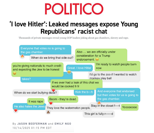 They called for rape, violence, and for their opponents to be sent to gas chambers, expressed their adoration of Adolph Hitler and Nazism, and called Black people monkeys and the N-word.