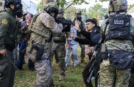 Operation Liberty – Chicago just documented verified footage of an ICE officer detaining an American citizen. And just yesterday, this image has been circulating of an agent pointing a gun just inches from an American’s face.