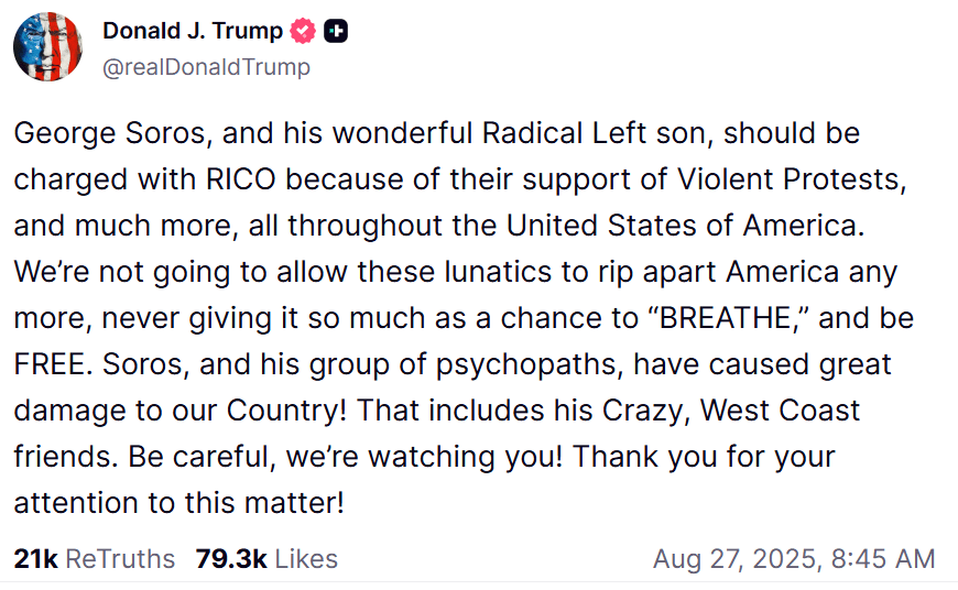 That statement was followed by Patel pledging that the FBI “will not rest until we find every single seed money, donor organization, and funding mechanism that we have,” adding that he was working with Treasury Secretary Bessent to track “those who fund these violent activities.” If you’ve been paying attention, this fits neatly into the Trump administration’s new playbook: use “domestic terrorism” as a pretext to target political opponents financially, legally, and organizationally. The administration has already used airstrikes against alleged cartel boats off the Venezuelan coast — now they’re floating the same approach toward protesters and activists at home. The October 8th meeting wasn’t about Antifa at all. It was about building a legal and rhetorical foundation to go after left-leaning donors and organizations under the guise of counter-terrorism. It was the latest attempt to turn fear into justification for repression — and the press conference that followed was the first draft of their propaganda campaign. Grasping for those Straw MenTrump came in hot to his second term with one goal in mind: dismantling Democratic and leftist-aligned organizations, primarily through financial warfare. His allies in Congress have already floated investigations into ActBlue and hinted at audits of liberal-leaning nonprofits. It’s part of a broader campaign to criminalize opposition under the guise of “national security.” Following the assassination of Charlie Kirk and the alleged link to “the Left,” right-wing agitator Laura Loomer tweeted, “The best way President Trump can reinforce Charlie’s legacy is by cracking down on the Left with the full force of the government.” So how does this connect to their obsession with blaming everything on “Antifa”? It’s the same playbook we saw two decades ago: Dick Cheney and Donald Rumsfeld needed a reason to invade Iraq, so they created one — “weapons of mass destruction.” Trump and his administration are now searching for their own WMD moment, something they can point to as justification for targeting left-wing organizations and donors powering the movement against them. It’s easy to create a monster when the public doesn’t have access to the whole picture — especially when that confusion is intentional. Trump and his allies have built up “Antifa” into a shadowy, omnipresent super-threat by accusing it of everything from “burning down Seattle and Minneapolis” after George Floyd’s murder, to instigating the January 6th attack, to orchestrating assassination attempts on Trump himself. They’ve even tried to link the killers of Minnesota Speaker Melissa Hortman and Charlie Kirk to supposed “Antifa sympathies.” The point isn’t truth — it’s fear. When the president of the United States and his cabinet label a non-existent organization as the root of domestic terrorism, it opens the door to extraordinary measures: surveillance, prosecution, and political purges. Many observers have noted that the October 8th “roundtable” focused more on laying the groundwork for future policies than on the policies themselves. Trump and his team are already deploying the National Guard in cities like Los Angeles, D.C., Portland, and Chicago — claiming they’re protecting ICE agents from “Antifa terrorists,” even though the people confronting those agents have been mainly journalists, neighbors, and elected officials protecting their constituents from unlawful detentions. When demonstrators object to those overreaches, the administration calls them “paid agitators.” Because in Trump’s worldview, no rational person could oppose authoritarianism — there must always be a villain, a puppet master, a George Soros behind the curtain. And sure enough, Trump took to Truth Social in August to demand:, “George Soros, and his wonderful Radical Left son, should be charged with RICO because of their support of Violent Protests, and much more, all throughout the United States of America.” It’s part of a deliberate strategy to conflate Democrats, leftist movements, and even fundamental protest rights with terrorism — a way to fold the entire opposition into one imagined enemy. It’s lazy, dangerous, and effective. Because if they can convince the public that “Antifa” and “the Left” are interchangeable, then suddenly every donation, every protest, and every critical voice becomes “aiding and abetting domestic terror.” That’s not law enforcement. That’s fascism with paperwork. The Path of the MoneyFollowing the October roundtable, Reuters published a damning report exposing what many had already suspected: the Trump administration has developed an explicit plan to use the full force of the federal government against left-wing organizations — all under the guise of “countering domestic terrorism.” According to the report, Trump’s senior advisor Stephen Miller is helping to lead the effort, which involves deploying America’s counterterrorism apparatus — the FBI, Department of Homeland Security, Department of Justice, IRS, and Treasury Department — to investigate and potentially dismantle groups accused of funding or organizing “political violence.” Two weeks after the assassination of Charlie Kirk, Trump issued National Security Presidential Memorandum 7 (NSPM-7), or the Countering Domestic Terrorism and Organized Political Violence Directive. The order directs the National Joint Terrorism Task Force, created by the Patriot Act in 2002 after 9/11, to focus on “domestic terrorists whose ideologies include anti-Americanism, anti-capitalism, and anti-Christianity.” While a White House official claimed the directive “remains focused on violence and illegal activity,” Trump’s own rhetoric tells a different story. When asked who these “domestic terrorists” were, he didn’t hesitate: George Soros and Reid Hoffman, the co-founder of LinkedIn and a promi