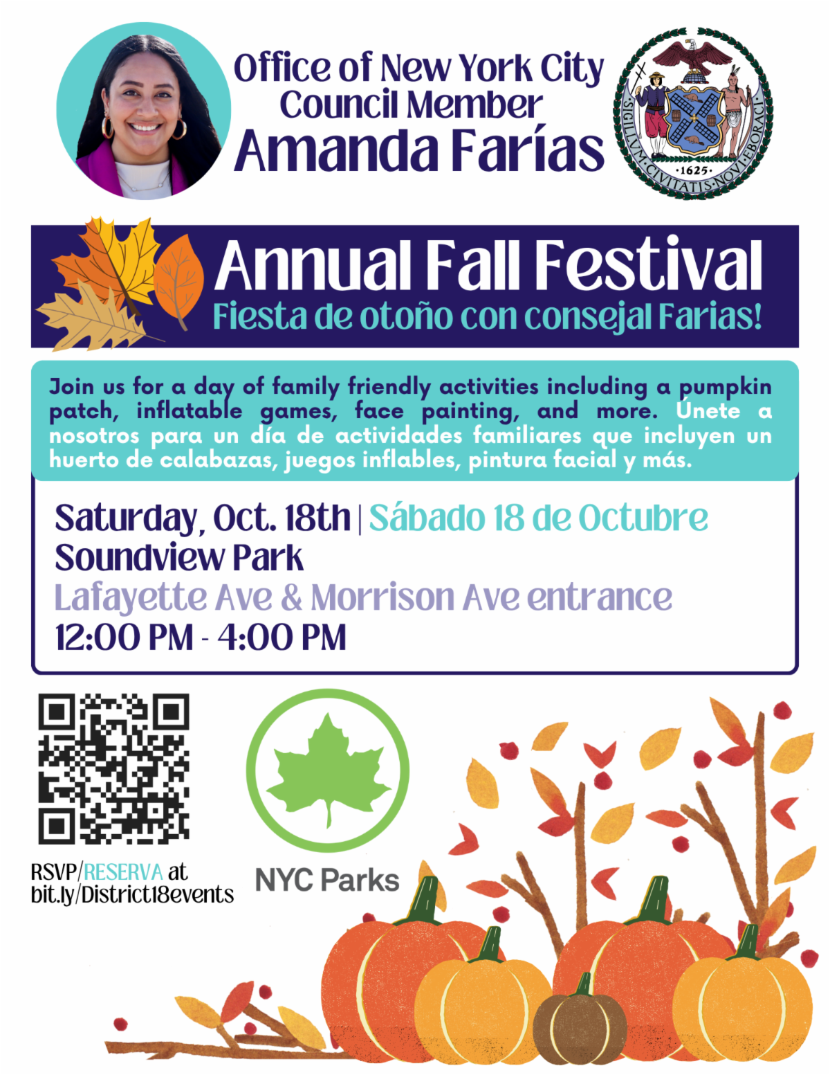 Come indulge in fresh popcorn & donuts, a Halloween pumpkin patch, haunted obstacle course, airbrush tattoos & face painting, live caricature artist, a double giant slide (yes, DOUBLE!) and so much more! Everything is free and open to the public, so bring your family, bring your friends, and let's make tomorrow a GREAT day in District 18!