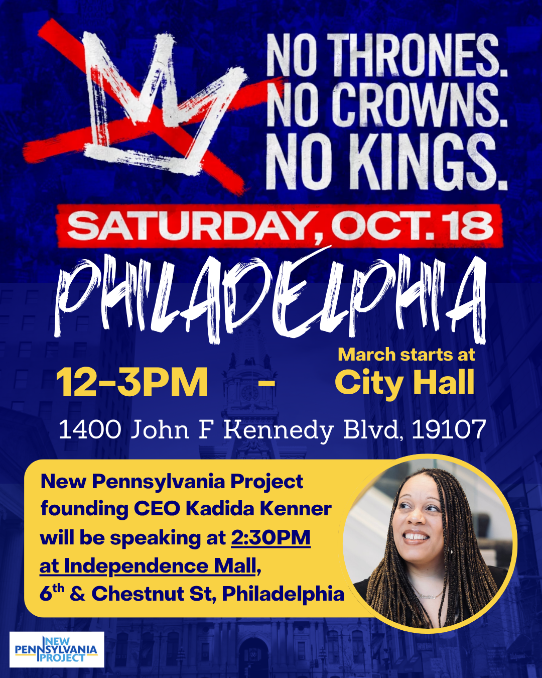 | No Kings Rally Kadida Kenner, founding CEO of the New Pennsylvania Project, will be speaking during the rally at Independence Mall.
