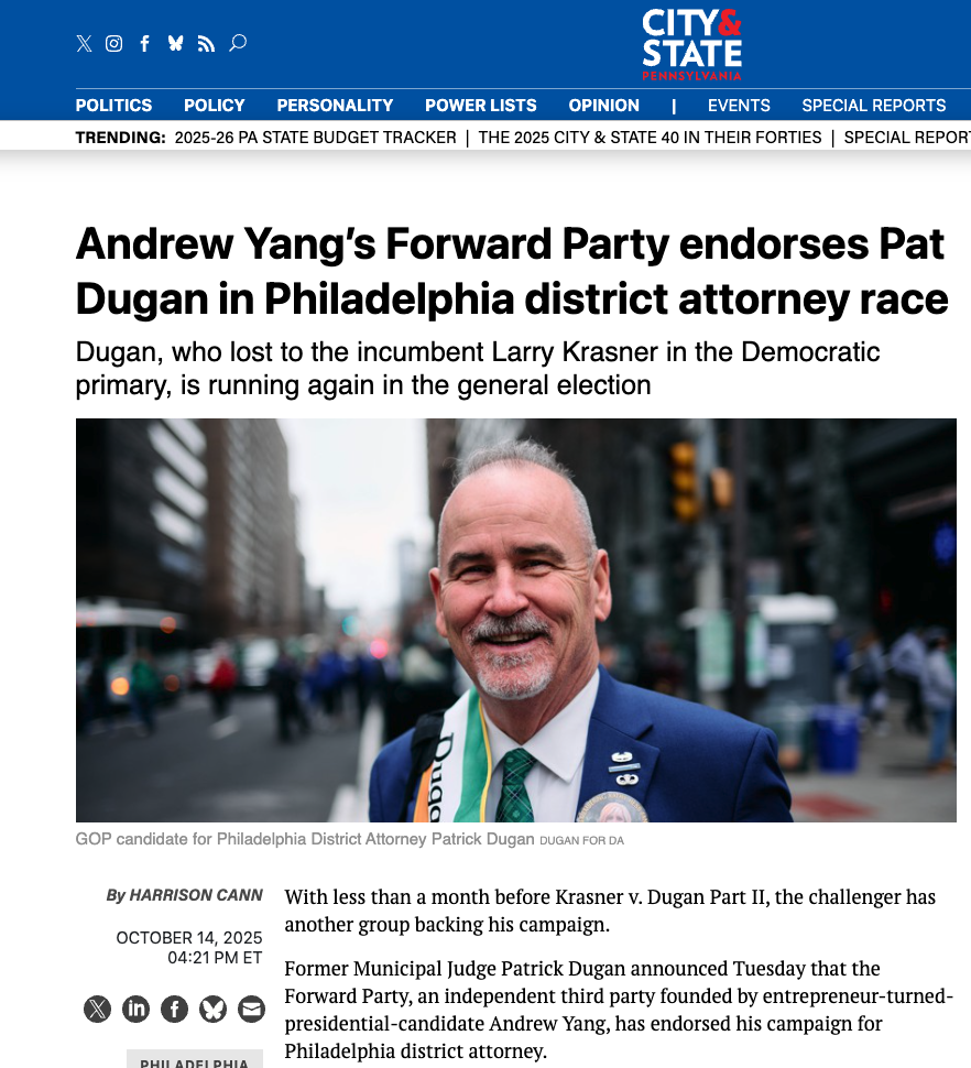 the Forward Party, said in a statement. “Philadelphians deserve a