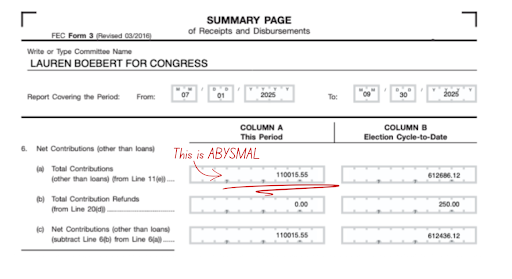 Yesterday, Lauren Boebert released her fundraising numbers for the last quarter and the results were pathetic—only raising$110,000,a shockingly low amount for an incumbent and (former?) MAGA darling who used to frequently pull in seven figure hauls.
