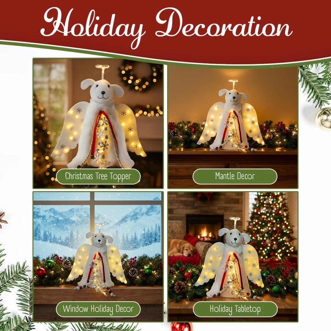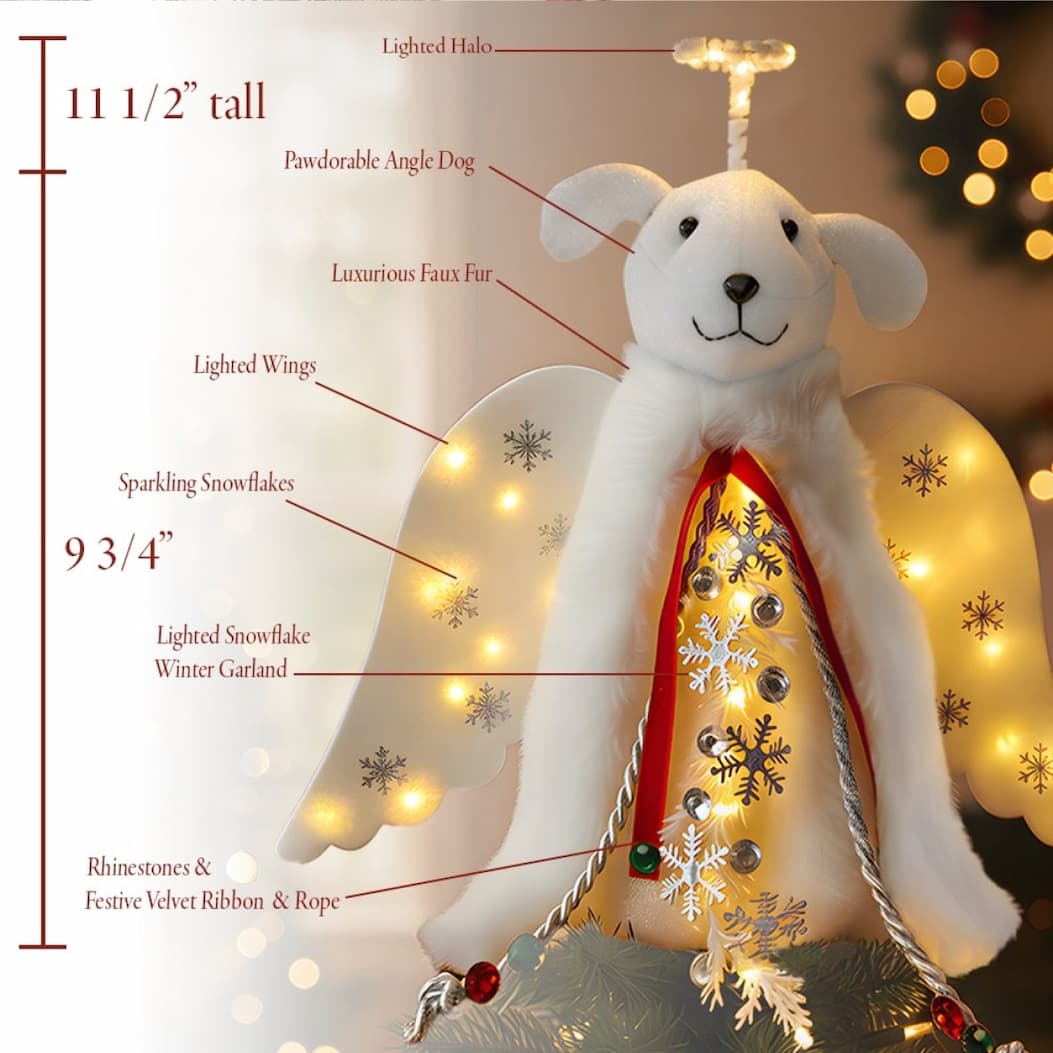 This beautiful holiday decoration features a lighted snowflake garland, halo, and wings—the perfect way to bring your dog's spirit into your holiday celebrations.