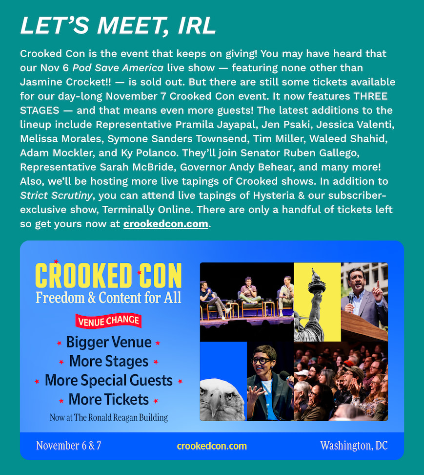 If the #Resistance looks like a bunch of people riding around in their birthday suits or inflatable unicorn costumes, then this should be fun. You can find your local No Kings event here. Ahead of this weekend, I recommend reading this essay by Crooked’s Jon Favreau on Trump’s authoritarian actions ahead, as well as his video laying out the stakes of this moment in history. WHAT ELSE?President Donald Trump said he’s hesitant to give Ukraine long-range missiles because he thinks the war could end soon. “It’s not easy for us to give you… massive numbers of very powerful weapons,” Trump told Ukrainian President Volodymyr Zelenskyy at the White House today. “Hopefully they won’t need it,” he added, a day after agreeing to meet in-person with Russian dictator Vladimir Putin. Rep. Marjorie Taylor Greene’s (R-GA) curious feud with the GOP continues. This time, she’s attacking parts of Trump’s agenda as “America Last.” Oof! Feel the burn! She’s especially incensed over Trump’s focus overseas, after Trump bailed out Argentina to the tune of tens of billions. “It’s a revolving door at the White House of foreign leaders when Americans are, you know, screaming from their lungs,” she said. Get ‘em, Marje! Venezuela is mobilizing troops and militias to repel any possible U.S. military intervention, as Trump floats airstrikes on the country and targets alleged drug boats off its coast. “On state television, radio and social media, announcers are telling Venezuelans that the U.S. is a rapacious Nazi-like state that wants to dig its claws into the country’s oil wealth,” the Wall Street Journal writes. Wait, I thought America’s president of peace was angling for that Nobel Peace Prize? The Trump administration plans to keep paying ICE and border patrol agents during the government shutdown… but not thousands of other federal workers. How else could Trump keep these federal agents in the field, wreaking havoc on American cities, and, in many cases, detaining American citizens? Meanwhile, one traffic controller, whose job is to make sure planes land safely, told lawmakers he had to start picking up hours as a delivery driver to pay for his daughter’s tuition. Priorities, amirite? Rep. Dave Taylor (R-OH) said that a swastika hanging in his office, emblazoned on an American flag, was part of a “ruse.” Multiple similar flags had been delivered to Capitol Hill offices earlier this year, according to a Hill aide from another office. But that doesn’t explain why one was tacked to a board in Taylor’s office: “It was plainly obvious to us that there was a swastika on the flag with the naked eye,” the aide said, explaining that his team threw theirs out immediately. Light at the End of the Email…Anyone who watched the New York City mayoral debate last night probably chuckled at Republican candidate Curtis Sliwa’s eccentric behavior. He often misheard questions, and even began answering one directed at Andrew Cuomo. When asked if he pays off his credit card each month, the 71-year-old replied: “I don’t have a credit card. I have a debit card.” A couple in New Orleans discovered a 1,900-year-old gravestone in their backyard that belonged to a Roman soldier named Sextus Congenius Verus, who sailed on the Asclepius warship and died at 42 years old. The marker was lost after its home, an Italian museum, was bombed during World War II. So… how’d it land in the South? No one knows. An app called iNaturalist uses AI to help nature lovers identify plants, bugs, and other wildlife — and connects people with others who also love the great outdoors. One couple from Virginia even met on the app: “I saw that he was big on galls … so I contacted him,” Izabella Farr said, referring to abnormal growths sometimes caused by insects. “Galls get the gals,” her partner, Jeff Clark, replied. Mark your calendars! The annual pumpkin boat regatta in Maine kicks off this Sunday. Attendees will be cheering on people dressed up in costumes kayaking in 500-to-800-pound gourds down the Damariscotta River. This is what it’s all about, people! Go do random, fun stuff with your neighbors! You won’t regret it! A 7-year-old German Shepherd named Freyja tracked down a 2-year-old missing girl in New Hampshire, right before night-time cold temperatures. Here’s a picture of Freyja and her handler, Jeremy, during her first search-and-rescue training session. She was just 8 weeks old! Queue the awwwwws. Credit: Jeremy Corson You’re currently a free subscriber to Crooked Media. For the full experience, upgrade your subscription. |