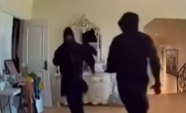 As more homes in the San Fernando Valley continue to be burglarized, a group of thieves were caught on video, discussing their criminal plans while stealing from an Encino home. The burglary happened Sunday afternoon as at least three people dressed in all black clothing ransacked the bedroom. While one of them was seen in home surveillance video going into the closet, another burglar was heard communicating with a possible accomplice on a Walkie Talkie. Then two days later, a home in North Hollywood was targeted by criminals in the middle of an afternoon. Lea Young, the homeowner, told NBC Los Angeles that she believes the burglars had been watching her home and saw her backing out of the driveway. Security video showed three people with masks and hoodies getting out of a black car and walking toward the side gate. What they didn’t know, Young said, was that her husband was at home, attending a Zoom call. “All of a sudden, he realized, ‘Oh my god. They have masks, and they’re hooded. They are burglars,’” Young described what her husband said. As Young’s husband screamed, saying, “Call 911,” burglars took off running.