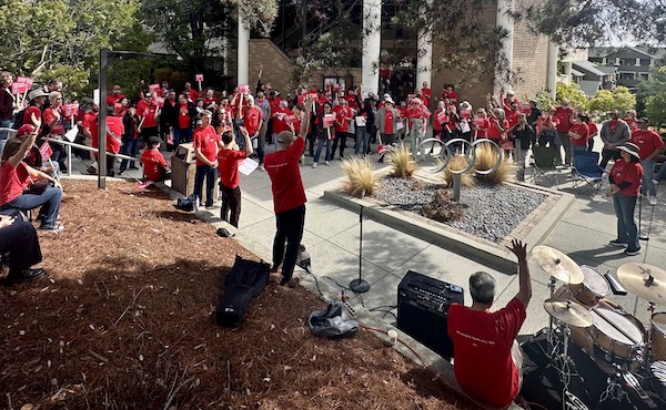Last week members of the San Mateo Community College Federation of Teachers, AFT Local 1493, boycotted a professional development day and rallied in front of the district office to protest unacceptable contract offers from management.