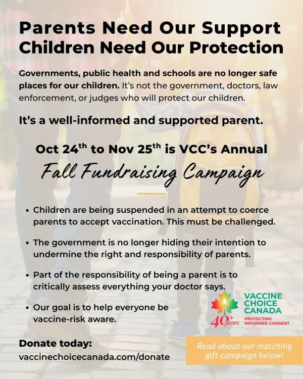 Vaccine Choice Canada Asks For Your Financial Support Two Times Annually - Spring & Fall