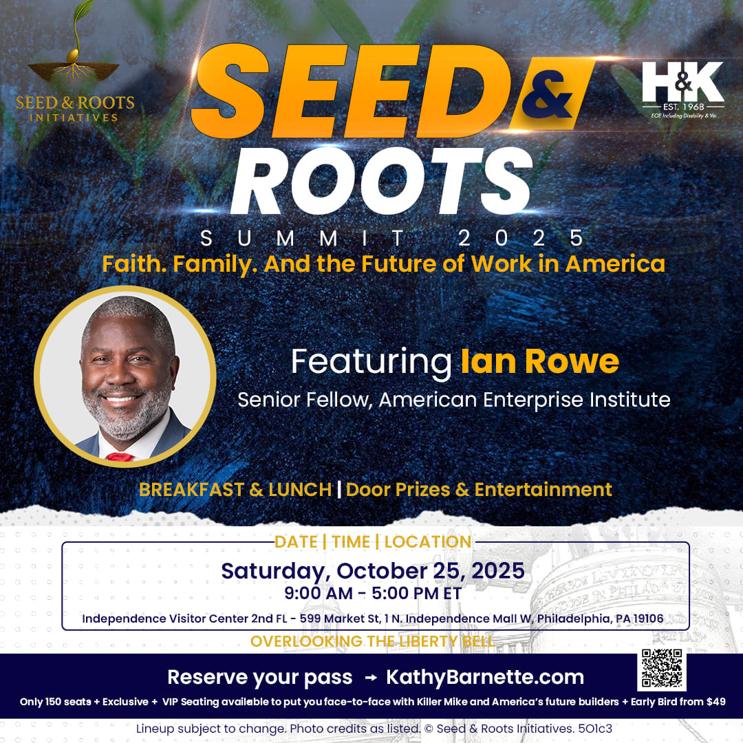 Ian Rowe is one of the most courageous and insightful voices redefining how we think about success, opportunity, and responsibility in America. A senior fellow at the American Enterprise Institute, Ian focuses on education, upward mobility, family formation, and adoption — issues at the very heart of our national renewal. He is the co-founder of Vertex Partnership Academies, a virtues-based International Baccalaureate high school in the Bronx, and the founder of the National Summer School Initiative, both created to expand real pathways of achievement for young people. His groundbreaking book, Agency: The Four Point Plan (F.R.E.E.) for All Children to Overcome the Victimhood Narrative and Discover Their Pathway to Power, has inspired educators and parents across the country to move beyond blame and rediscover self-determination. At Seed & Roots 2025, Ian will unpack how family, religion, education, and entrepreneurship form the moral fabric of a free society — and why restoring these pillars is essential to building the next generation of capable, confident, and free Americans. CLICK TO PURCHASE YOUR TICKET. 🗓 Saturday, October 25, 2025 Reserve your seat today at KathyBarnette.com Stay connected: Website: www.KathyBarnette.com Twitter: / kathy4truth Audacy: The Kathy Barnette Show Instagram: / kathy4truth Facebook: https://tinyurl.com/Kathy4TruthFB |