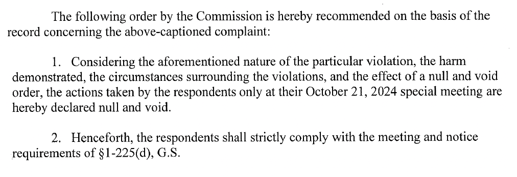 Now, the FOIC can provide relief that it “believes appropriate to rectify the denial of any right conferred by the [act]” and that includes declaring any action “null and void” that was “taken at any meeting which a person was denied the right to attend.” It was also found that the Democrats “deprived the public of access to the appointment of an official who ... would otherwise have been elected to serve by the public.” It was further found that the Democrats did not act in good faith to comply with the notice requirements of the FOI Act with respect to the October 21st “emergency” meeting. The Commission recognizes that nullification “may call into question the legality of any actions by the respondent board in which Ms. Behette’s vote constituted a deciding vote.” Nonetheless the FOIC believes the “proper remedy” would be to “declare null and void the action taken” at the October 21st meeting, aka the “sham emergency meeting” where the Democrats attempted the coup.” Here is the Finding in their words: The FOIC will issue the final ruling on October 22, 2025. What is most significant and most frightening is the joint collaboration by the Democrat Selectwoman and the Democrat controlled BOE to block the legal challenge to what proved to be an illegal act of the BOE in violation of the meeting and notice requirement of Section 1-225(d) of the Connecticut General Statutes. Is this what a Democrat controlled Greenwich would look like where a board, specifically the BOE, which controls over $200 million or over 40% of the total town budget, to engage in an illegal act and then do whatever they can to block a challenge to their illegal behavior. Greenwich voters must say no to such rogue action on the part of Greenwich Democrats by electing Republicans as First Selectman (Fred Camillo) Selectwoman (Lauren Rabin) Town Clerk (Jackie Budkins) Tax Collector (Heather Smeriglio) Remember it was First Selectman Fred Camillo and Selectwoman Lauren Rabin who stood up, fought and won the battle against illegal behavior by the Democrat controlled BOE. It was Selectwoman and Democrat Stone McGuigan who did not support the nullification of an illegal act by the BOE. It cannot be Rules for Thee and Not For Me – which is becoming the Democrat Mantra and its awful that this is completely on partisan lines. Over $200 million dollars of the annual Greenwich budget is controlled by the BOE. Illegal actors should not be trusted to control the education of our children and how the budget is allocated. The remainder of the budget is controlled by the BET (Board of Estimate and Taxation). Here too we have a Republican tradition of responsible fiscal spending and keeping taxes low to make Greenwich as affordable as possible while spending more per pupil on education than any of our neighboring towns. Success should rewarded at the ballot box by voting for the Republican BET slate and Row B this November. EARLY VOTING IS GOING ON NOW! The Goldstein Substack is free today. But if you enjoyed this post, you can tell The Goldstein Substack that their writing is valuable by pledging a future subscription. You won't be charged unless they enable payments. |