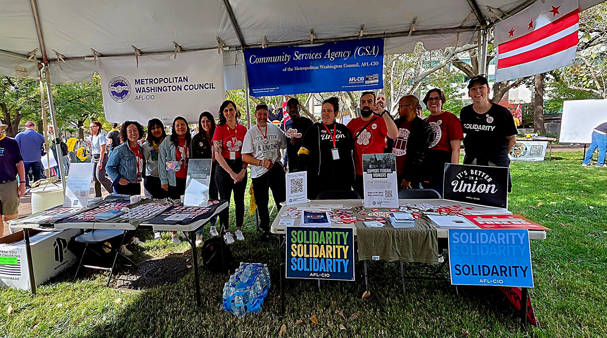 The Metropolitan Washington Council, AFL-CIO, the Community Services Agency and members of Washington Baltimore News Guild together with Free DC and community partners from the DC region were at No Kings: DC Rising on Saturday to channel collective outrage into collective action. Together we connected with thousand of people to talk about how to form a union, join a union, and exercise our power as workers. Thanks to all who joined us!
