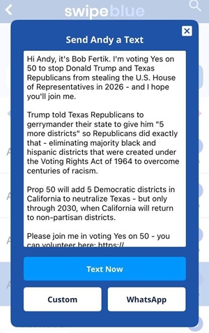 Your friends in each state will get a message customized to their state - for example this is our California YesOn50 message.