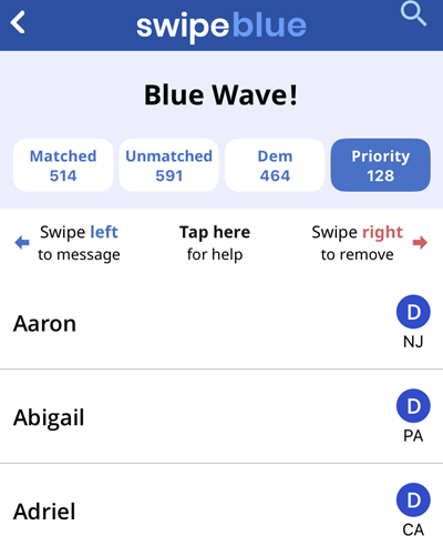 SwipeBlue is free, secure, and designed to empower Democratic activists like you. If you like it, please forward this message to your friends so they can join our grassroots campaign.