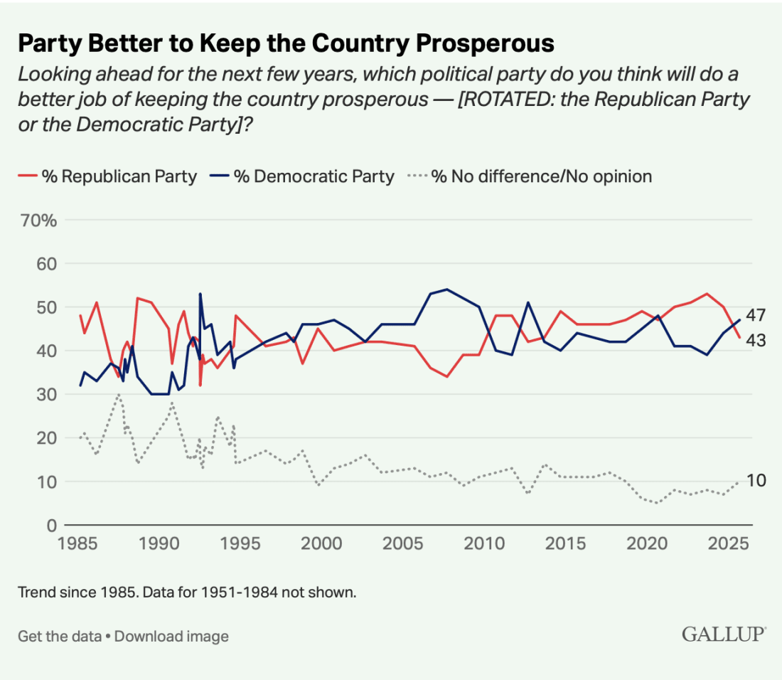 That kind of intra-party defection is dangerous with major gubernatorial races and the midterms looming. The latest Economist/YouGov poll shows Democrats holding a 5-point advantage overall, with independents nearly twice as likely to back a Democrat over a Republican. And according to Morning Consult, Trump’s approval is underwater in every swing state — down 10 points in Virginia and 12 in New Jersey. That’s bad news for GOP gubernatorial nominees — Winsome Earle-Sears in Virginia and Jack Ciattarelli in New Jersey — both fighting uphill in their races next month. Healthcare: The Democrats’ Trump CardIf the shutdown is a fight about priorities, Democrats picked the right one. Democrats have made those subsidies the heart of their shutdown stance. The numbers show the public is with them. A Subtle but Significant ShiftWe may also be seeing the early notes of a political realignment. Even more striking: 47% say Democrats are the party best suited to keep the country prosperous — a question Republicans have led since 2012, except for a brief Democratic surge during COVID. DON’T MISS BEHIND THE NUMBERS EVERY FRIDAY WITH RICK & ANDREW WILSON!You’re currently a free subscriber to Lincoln Square Media. For full access to our content, our Lincoln Loyal community, and to help us amplify the facts about the assault on our rights and freedoms, please consider upgrading your subscription today with this limited-time offer: Not ready to subscribe? Make a one-time donation of $10 or more to support our work amplifying the facts on social media, targeted to voters in red states and districts that we can help flip. Every $10 reaches 1000 Americans. The Truth needs a voice. Your donation will help us amplify it. Want to help amplify this post? Please leave a comment and tell us what you think. |
