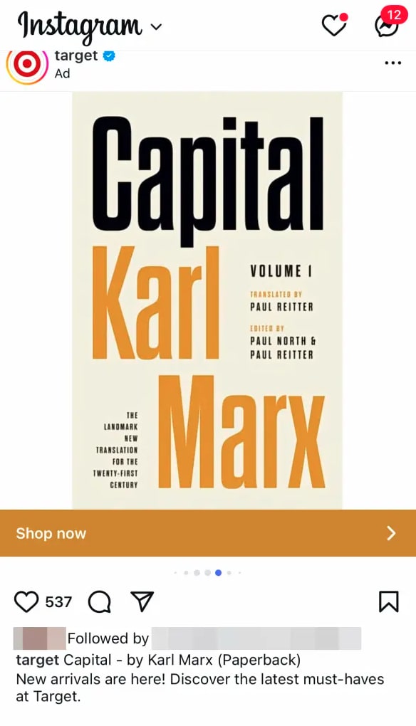 The Capitalist is a reader-supported publication Reject Corporate Left Wing JournalismFall Fashion with a side of CommunismRetail giant Target has sparked outrage after slipping Karl Marx’s anti-capitalist manifesto “Capital” into Instagram ads for women’s fall scarves and boots, targeting urban female shoppers amid the chain’s desperate bid to ditch its “woke” image following a crippling 2023 boycott.