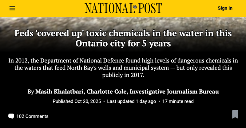 The same politicians in Ottawa who preach “climate action” covered up toxic ‘forever chemicals’ in North Bay’s drinking water for nearly five years.