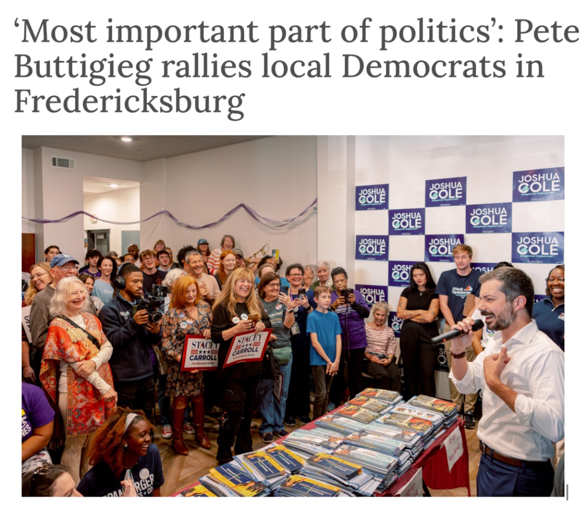 | Hi friend, check out this headline from Pete’s trip to Virginia to support Abigail Spanberger and Democrats up and down the ballot: