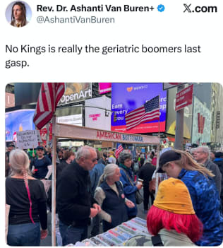 Last Saturday (October 18, 2025), more than 7 million Americans from both sides of the political aisle joined the No Kings protest with the united goal of making it clear that “America has no kings, and the power belongs to the people.” Altogether, there were 2,700 events, covering all 50 states and the District of Columbia, garnering worldwide media coverage. This event struck a nerve in America, as millions rose up against the rise in authoritarianism seen daily coming from the President and MAGA movement more broadly. Together, Americans practiced their First Amendment right to protest peacefully, making it the largest protest in American history thus far. Predictably, Trump responded with an angry Truth Social post that night, using an AI-generated video of him dropping loads of pardon my French, dung, over the country from a fighter jet labeled “King Trump”. Now that we’ve gotten the elementary response from the leader of the free world out of the way, let’s break down some of the other juvenile lies and bad faith arguments coming out of the MAGA ecosystem surrounding this event, beginning with a few myths: 1.) It was organized by paid extremists and will be marked by violence.Well, the day came and 7 million turned out. Not one arrest was made. Once those claiming there would be mass violence realized their argument was crumbling, they switched to “look at all these unserious people having fun.” Pick a lane, Mike Lee. 2.) There were no organized goals or actionable results in mind.According the the No Kings website, this was just the beginning. They have lined up one actionable item that will update each week going forward. This week’s is Tell Your Story Some other bad faith arguments included… 1.) “No Kings is really the geriatric boomers last gasp.” Ok sure, the crowds looked predominantly older and whiter. So? Isn’t that the target demographic of Trump’s base? Perhaps this specific turnout serves as an indicator of a larger dissatisfaction among the older generation of civically engaged voters. If anything, that statement should set off alarm bells at the RNC as we begin our creep towards the 2026 midterms. 2.) “Trump’s win delivered him a mandate, so why even protest?” Well, for those of us who are still constitutional conservatives, it matters a lot. For one, the election margins were more narrow than MAGA world would have you believe. Secondly, even if Trump had a “mandate”, it would run counter to all we believe as federalists to just “shut up and let him rule.” Remember the Tea Party protests? If Obama had told Republicans to just sit down and wait out his reign, they would have rightly called him out for acting like a king. Columnist Jonah Goldberg summed it perfectly in this tweet:
