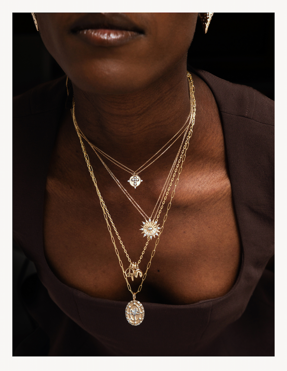 This New Collection from Three Stories features a collection of friendship necklaces made of 14K yellow gold and natural gemstores.