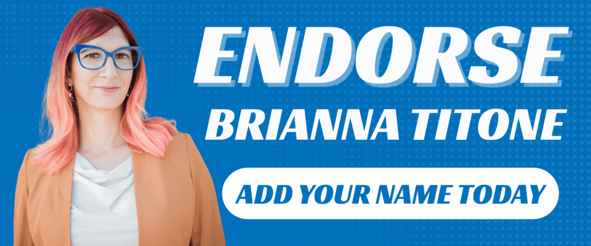 |  Friend, Since Brianna has entered the race, she’s been able to get support and endorsements from all across the state and nation. We’re looking to grow that list of endorsements–and we want you to be next on the list.  Brianna’s running for State Treasurer because she wants to protect Coloradans' hard-earned money. She knows it won’t be easy but she isn’t afraid of a challenge; she’s beat the odds before. She was able to flip a deep-red district because people knew that she’d put Colorado first. If you support a candidate who will protect your money and put Coloradans first, Brianna’s the person for the job. Will you endorse her today? Gaining your support means everything to this campaign. We couldn’t do it without you. Let’s win this. – Team Titone Fighting for working families, consumer protections, and small businesses in the House of Representatives has been the honor of Brianna's lifetime. Brianna is running to be your next Colorado State Treasurer to support small businesses, and fight hard to save hard-working Coloradans money. Follow Brianna Online:   Paid for by Brianna for Treasurer. Registered Agent Brianna Titone. |