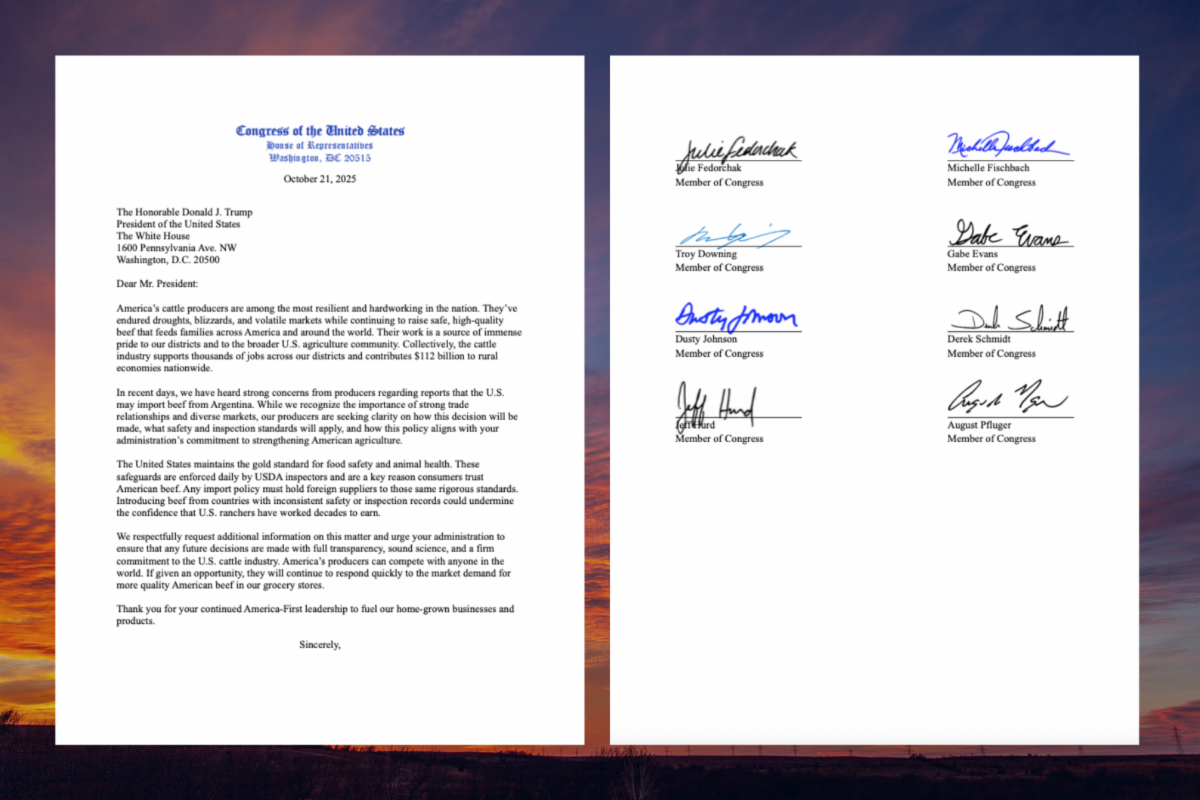 In response to the reports of potential beef imports from Argentina, I joined several of my colleagues this week in sending a letter to the Trump Administration, highlighting how American ranchers supply the world's highest-quality beef and should not be undercut by foreign imports produced at lower standards. I am proud to stand with some of the strongest American beef supporters in Congress to ensure we keep investing in and supporting American agriculture.