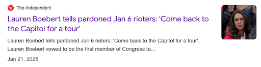 Once authorities began making arrests of insurrectionists, Boebert fought for their release from prison. And when she got her wish and Trump freed them, she invited the freed insurrectionists to stop by her office for a tour.