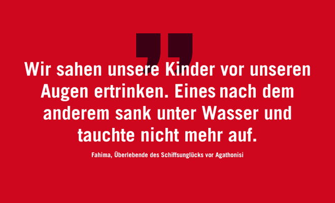 die bewegende Geschichte von Fahima hat uns seit der Schiffskatastrophe von Agathonisi im Jahr 2018 nicht losgelassen: Sie verliert bei dem Unglück ihre vier Kinder. Insgesamt sterben an jenem Tag 16 Menschen, darunter sieben Kinder und zwei Säuglinge – weil Griechenland sie nicht rettet, obwohl verzweifelte Angehörige die Behörden einen ganzen Tag lang anflehen. Erst als die entkräfteten Überlebenden den Strand erreichen wird die Küstenwache aktiv. Viel zu spät.