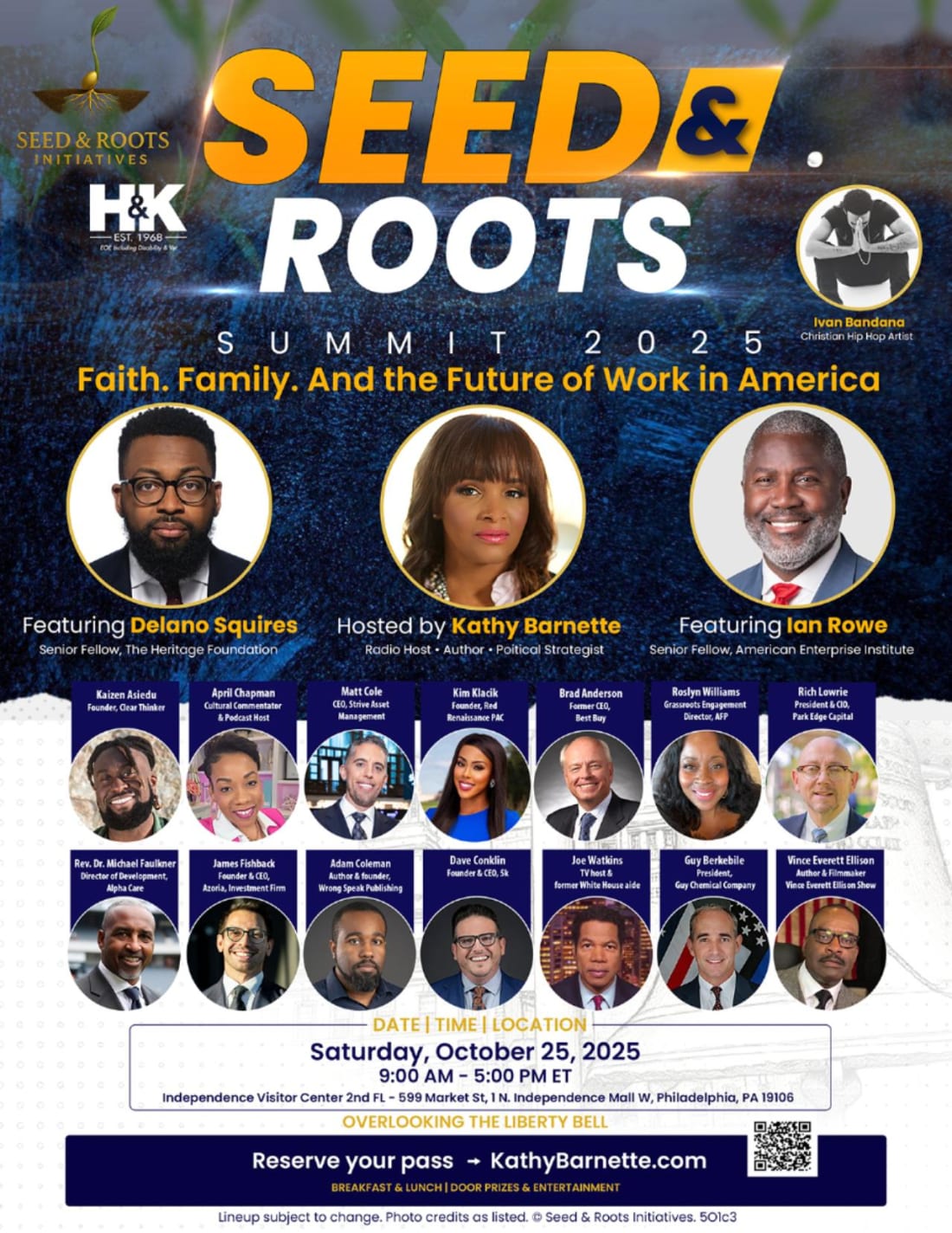 The Seed & Roots Summit 2025: Faith. Family. and the Future of Work in America was completely SOLD OUT, and more than 20,000 people watched our livestream in real time. Throughout the day, people came up to me and said, “I’ve been to hundreds of conferences, and I’ve never experienced anything like this.” That means so much — because this event was never about repeating the same old voices beating their chests with no real change. We showcased new voices, fresh ideas, and genuine hope for the future. We even had a young black woman, who said she’d voted Democrat all her life, stand up and say, “I think I’m a Republican.” That moment captured the spirit of the day — honest conversation, open hearts, and courage to rethink long-held assumptions. This was over three months of 5:00 a.m. mornings and 1:00 a.m. nights — of planning, organizing, hundreds of conversations, a few tears, many prayers, and finally, releasing it all into God’s hands. And He was faithful. People drove up from South Carolina, flew in from Texas, and traveled across Pennsylvania — all to hear truth, connect with others, and be reminded that they are not alone. I’m grateful for the vision God gave me and for everyone who helped bring it to life: