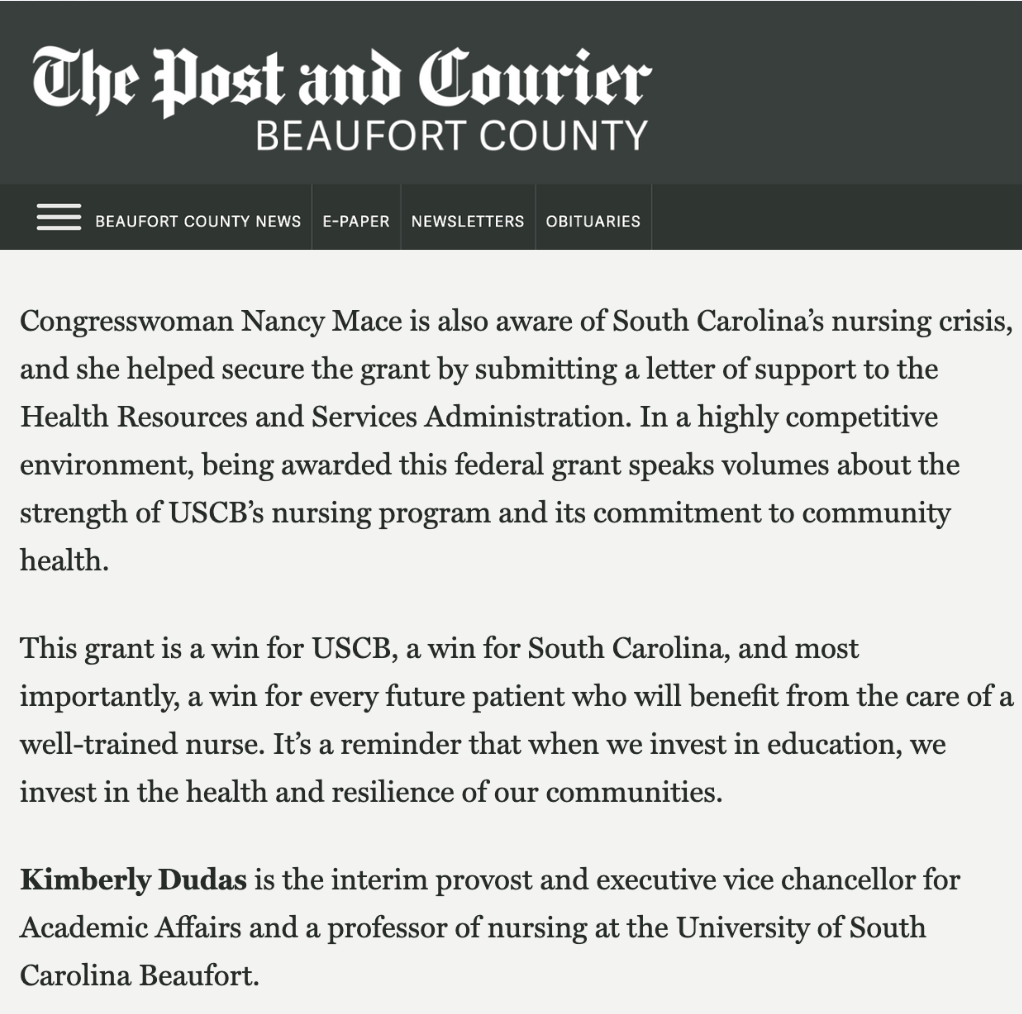Congresswoman Mace sent a letter to South Carolina financial institutions urging them to protect military families from penalties, fees, or foreclosures during the ongoing shutdown.