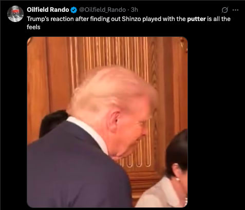 Symbolic Golf Legacy Revived: Takaichi presented Trump with Abe’s used putter, a gold-leaf ball, and a Hideki Matsuyama-signed bag, echoing the assassinated leader’s rounds with Trump to build instant rapport.