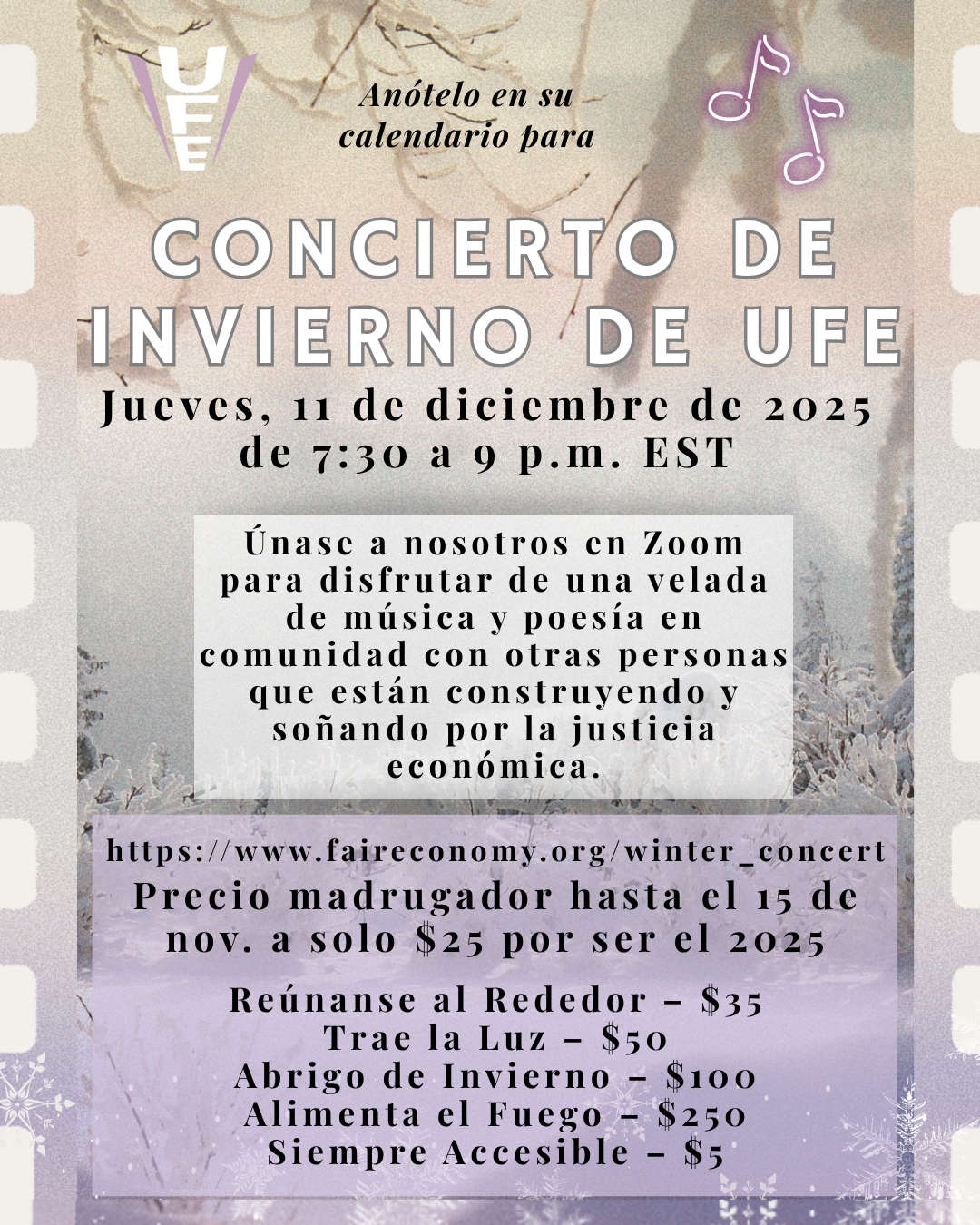 2025 de 7:30 a 9 p.m. EST, para disfrutar de