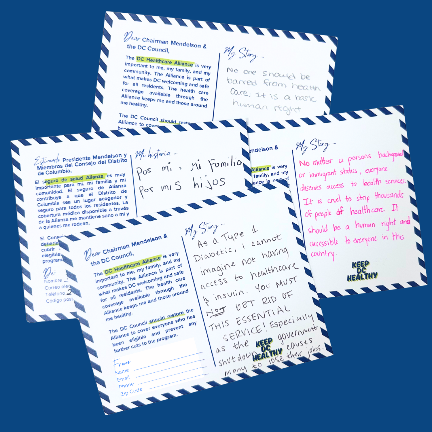 Our commitment to restoring the Alliance will not stop at the Alliance Rally– and neither should yours! We are still collecting postcards to share the importance of the DC Healthcare Alliance.