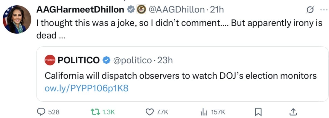 Thank you for being a free subscriber to So, Does It Matter? Please support what we do. And also get 100% of our content (right now you get about 60% of it!). In fact if you upgrade now, you break through the paywall at the bottom of THIS post! Afternoon Hot Takes in California Politics!Newsom v. Harris? Baby Bonta! Prop 50… EV Sales Tank… National Redistricting… More!Our afternoon columns are typically reserved for paid subscribers—There are a whole bunch of great hot takes below — the first two are above the paywall. Upgrading is easy and affordable, and it unlocks every column. Why stop at just 60% of the story? Subscribe today and instead of two “hot takes” read them all! And unlock of what So, Does It Matter? has to offer! And — we are in the middle of our Halloween Sale! Which means you get a 25% (or so) discount: $5/mo $50/yr! Here Are The Afternoon Hot Takes…OK, like with an iceberg that only has a small part you can see above the water, only a small part of this extensive column is above the paywall. FOMO? Here is why you should upgrade your subscription! 60% of our content is free, but 40% is for paid subscribers. There are a a lot more “Hot Takes” below… Harris vs. Newsom: California’s Civil War?Are we looking at an intra-party, intra-California food fight as Democrats hunt for a 2028 contender? It’s Harris vs. Newsom — come the end of next year they may both be criss-crossing America, jockeying for national dominance from the same home base. Harris brings history and name recognition; Newsom brings swagger, donors, and camera polish. Each claims loyalty to the party, but both are clearly plotting the next act. The only real suspense: who wins California’s delegates — and the bragging rights that come with them? Dan Walters’ take is spot on here. Four-Year-Old Attorney General Says “Neener Neener” To Federal Election OversightCalifornia Attorney General Rob Bonta is throwing a fit over federal election monitors, vowing to send state agents to keep tabs on the U.S. Department of Justice observers. Instead of cooperating to ensure fair elections, Bonta is treating basic oversight like an invasion. It’s petty, partisan grandstanding — a stunt meant to score headlines and appease the anti-Trump base. When California’s top lawman acts like a campaign operative, it’s no wonder public trust keeps slipping. Ashley Zavala of CRA has the scoop. This X post from Assistant United States Attorney General Harmeet Dhillon is unimprovable. OK, like with an iceberg that only has a small part you can see above the water, only a small part of this extensive column is above the paywall. FOMO? Here is why you should upgrade your subscription! 60% of our content is free, but 40% is for paid subscribers. There are a a lot more “Hot Takes” below…... Keep reading with a 7-day free trialSubscribe to So, Does It Matter? California Politics! to keep reading this post and get 7 days of free access to the full post archives. A subscription gets you:
