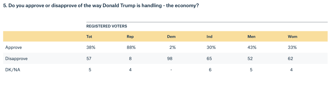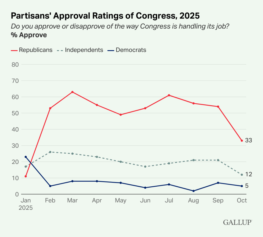 The latest Economist/YouGov poll released Tuesday contains a truly shocking figure: 61% of Americans say the country is headed in the wrong direction. That includes 68% of independents and even 24% of Republicans — a sign that frustration with the Trump administration is no longer confined to the left. Congress in CrisisCongressional leaders on both sides of the aisle are deep underwater as the shutdown drags on. YouGov found that 58% of Americans have very little trust in Congress, and even among Republicans, 47% express skepticism. A separate Gallup survey puts overall congressional approval in the teens, marking a sharp drop among Republicans since the start of the shutdown. The chaos in Washington is wearing thin with everyone — including the GOP’s own base. Trump’s Favorability Hits Rock BottomThat same YouGov poll found Trump’s favorability at its lowest point ever, with 57% of Americans holding an unfavorable view of the president. The latest Reuters/Ipsos poll reinforces the slide: 57% disapproval, up roughly five points since the last survey. The country isn’t just tired — it’s tuning him out. The Economic Foundation CrumblesWhat’s most striking about recent polling is the collapse of Trump’s economic credibility. Remember: This was the issue that carried him back into the White House. In CNN’s 2024 exit polls, two-thirds of voters said the economy was “not so good” or “poor,” and that pessimism correlated directly with support for Trump. His entire brand — the myth of the strong businessman — was built on it. Now, that foundation is cracking. Multiple recent polls show a total reversal in public perception: