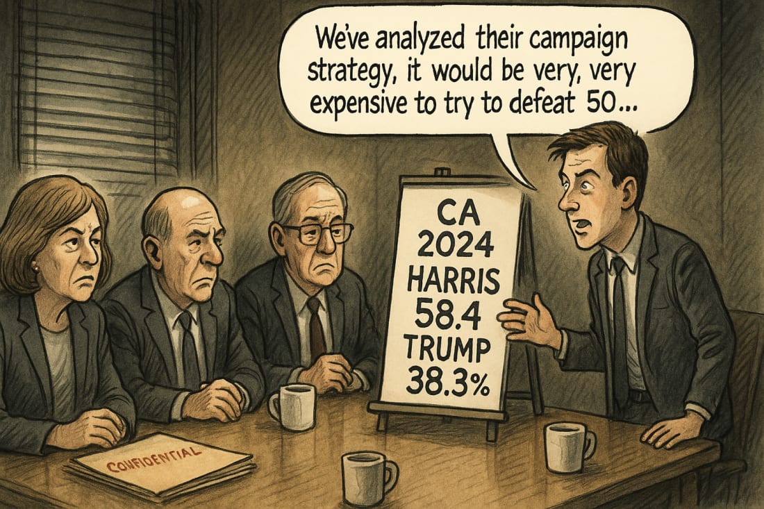 This content is available for free to all subscribers. But you really should consider a paid subscription. This unlocks our afternoon e-mails, our Saturday “What is Jon Reading” e-mail, and analysis on breaking news. Normally a subscription is a modest $7 a month or just $70 for the year. But we are in the midst of our Halloween sale! Which means until this Friday, at midnight, you can sign up for $5 a month or just $50 for the year! Did a Room Meeting Far from California Ensure The Passage of Proposition 50?The disparity of campaign cash between the Yes and No campaigns has created two very different scenarios for likely Republican and Democratic voters…A Decision In The Dark?Prop. 50 was placed before voters with a special election called, and shortly thereafter, a meeting would have taken place. On Zoom or in a conference room in Washington, D.C., Experts would have ballparked the chances of defeating the cynical gerrymandering plan, given the shrewd strategy of the Yes side to make the vote a referendum on Trump in a deep-blue state that the President lost by over 20 points. With limited resources and a national map, it’s clear that the price tag to try and take it down would have diverted too many resources away from the fight to hold or pick up other competitive seats around the country. In the meantime, Newsom has raised vast sums of campaign money from everyone you can think of who relies on state funding or government favor. In fact, on Monday morning, Newsom sent an email out to donors titled, “You can stop donating now. Thank you.” It went on to say, in part: “We have hit our budget goals and raised what we need to pass Proposition 50. You can stop donating…” GOP-aligned committees would send enough funds to show respect for the Golden State’s nine-member Congressional delegation, and some California-based major donors, but that was it. I assume this is what happened, and that’s life. Those of us who live here and are having this thing done to us—we fight hard against it, campaign hard against it, and pray. A lot of hard work has gone into opposing Prop. 50 up and down the state, and this analysis is not meant to diminish any of it. The ConsequencesThe airwaves, mailboxes, and screens of California are buzzing with one-sided noise this election season, since ballots dropped. Whether you hear it depends on who you are and how you’re registered to vote. Proposition 50, a measure that would let politicians pick their voters instead of the other way around, is being propelled by a financial juggernaut on the Yes side, while the No side, for the reasons I mentioned above, is running on fumes. The result? Two households on the same street are living through entirely different elections. Consider the Smiths and the Joneses, neighbors living across the street from each other. Both households have four voters, but their election experiences couldn’t be more different. The Smiths are registered Democrats: Mom, Dad, their adult son who still lives at home, and Grandma. Their world is saturated with Yes on 50 messaging. Watching CNN or a late-night show? They’re hit with slick ads laced with anti-Trump rhetoric. Streaming Hulu, YouTube TV, or Netflix? More ads tailored to their household. Their phones, tablets, and computers buzz with texts, emails, and pop-ups urging a Yes vote. Their mailbox overflows, and campaign volunteers knock on their door, reminding them to mail their ballots. For the Smiths, this special election feels like a high-stakes battle. They proudly vote yes and tell their family and friends. Across the street, the Joneses—four registered Republicans—experience near silence. They received a ballot and voter guide weeks ago, maybe saw a No on 50 mailer or ad, but that’s it. No TV spots interrupt their World Series games, except perhaps a stray Tom Steyer ad. Their streaming services, phones, and mailboxes are quiet. No one knocks on their door. For the Joneses, this election barely registers. Without campaign outreach, the misleading ballot question language—crafted by Attorney General Rob Bonta (read: a tool of Gavin Newsom)—might mislead them into voting Yes. In fact, a recent Emerson College survey showed 25% of Republicans saying they would vote for Prop. 50. Communicating To Voters MattersIt has been my good fortune to run successful ballot measures in a dozen states, and I can tell you: voter contact matters. When one side dominates the conversation, it tilts the playing field. The Yes campaign’s financial edge explains much of their lead in public polls. Proposition 50, which would let politicians cherry-pick their voters, is bad policy. As Arnold Schwarzenegger said, “Two wrongs don’t make a right.” There are plenty of reasons to reject it—if they are communicated to voters. But without a robust No campaign, solid arguments against 50 never reach the people who need to hear them. The Smiths are drowning in campaign noise, while the Joneses barely know an election is happening. Voters deserve better. They deserve a fair fight, where both sides make their case. But a calculated political decision about where not to spend political resources has made Proposition 50’s special election a one-sided affair. You’re currently a free subscriber to So, Does It Matter? California Politics! For the full experience, upgrade your subscription. See how much more you get with an inexpensive, paid subscription, but clicking the button below! Support me in providing hard-hitting, clear-eyed analysis of California politics. I am beholding to no one, and sugar-coat nothing! And right now, take advantage of our sale! |